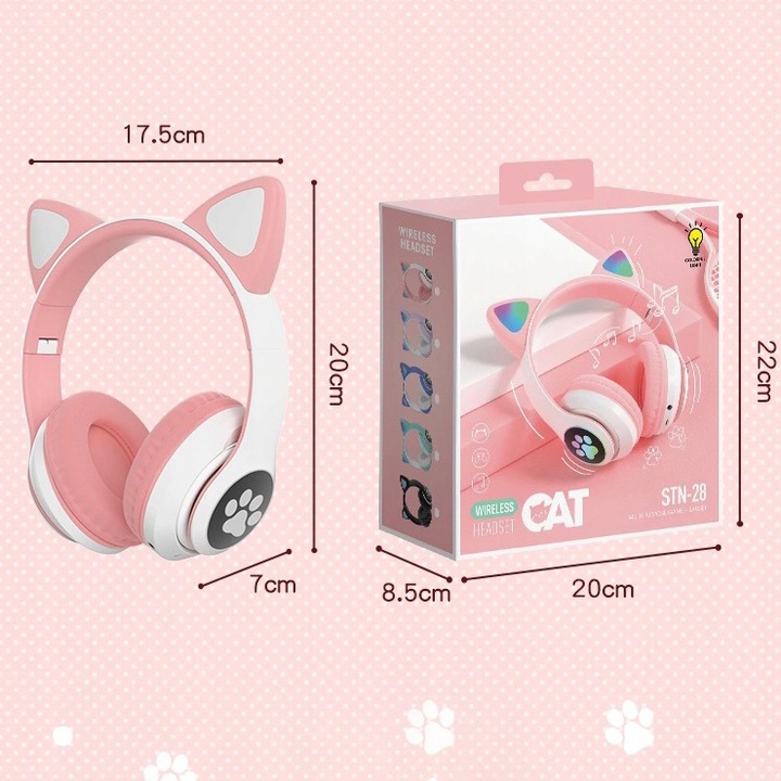 РОЖЕВІ BLUETOTH LED НАВУШНИКИ З ВУШКАМИ ДІТЯЧІ
