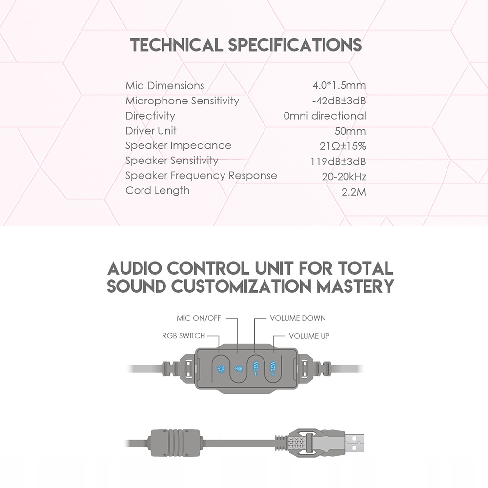 Рожеві ігрові навушники HG11 для ПК з RGB