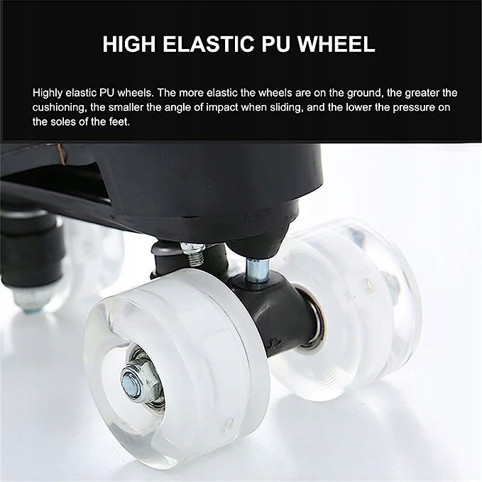 - МІЦНІЙ КОЛЕСА - Як чоловічі, так і жіночі ковзани мають міцні чотириколісні ковзани, виготовлені з міцного та формованого поліуретану (PU), який забезпечує безпечну та надійну їзду.