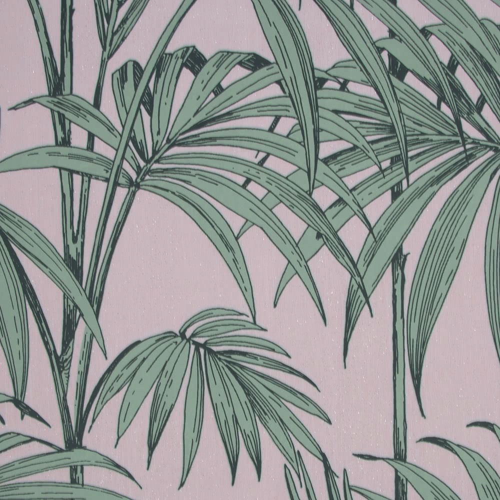 РОЖЕВІ ВІНІЛОВІ ШПАЛЕРИ ЗЕЛЕНЕ ПАЛЬМОВЕ ЛИСТЯ 3D