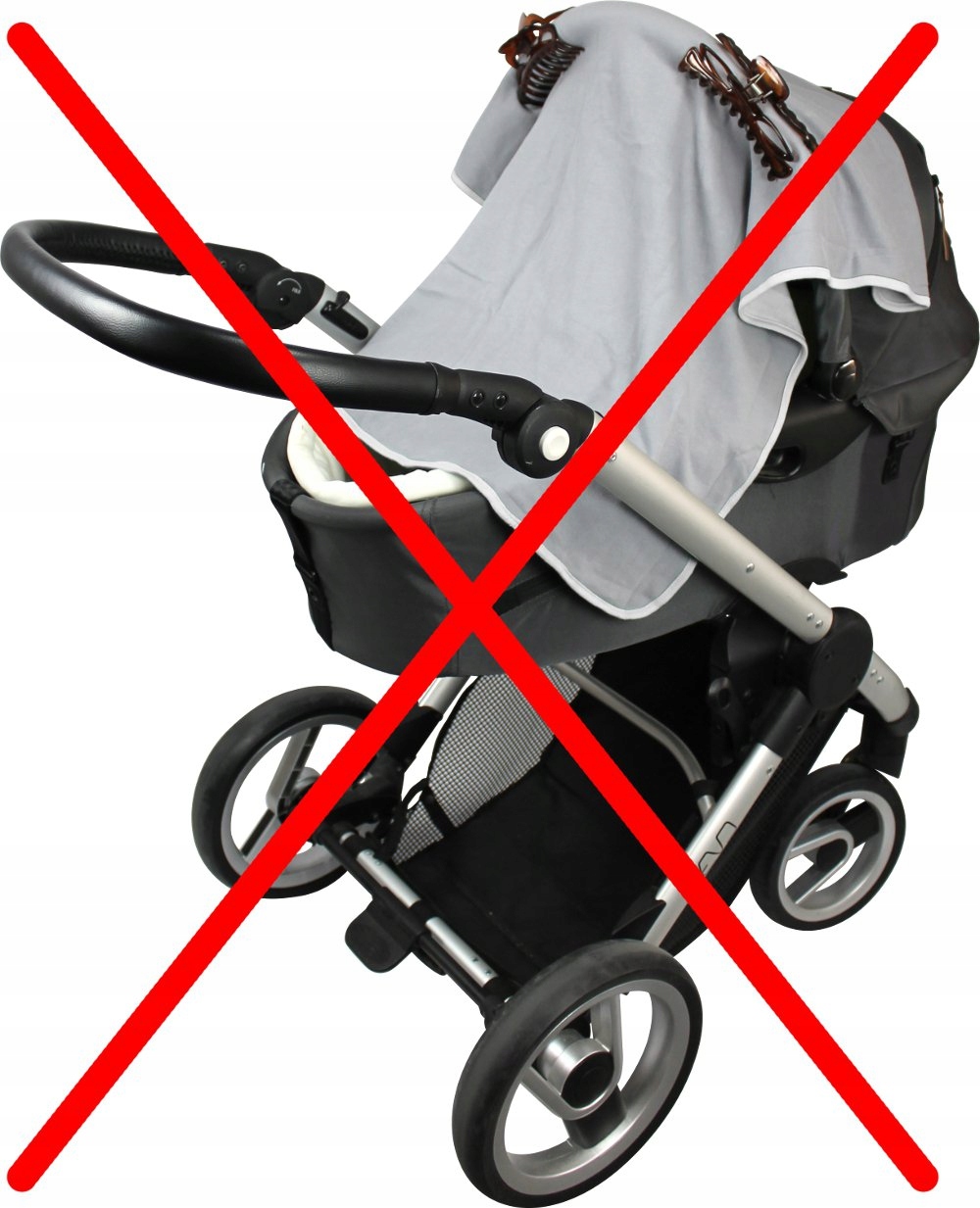 Дослідження показують, що в інвалідному візку, покритому ковдрою, може бути надзвичайно гарячим, що може спричинити перегрів дитини. Деякі бренди коляски мають дахи, що охоплюють більшу частину тіла дитини. Вони прекрасно захищають від сонця, але вони синтетичні і не дихають, створюючи дуже гаряче середовище. Багато споживачів все ще мають старі звички і покривають мушлінською коляскою. Хоча Muslin Cotton, здається, є більш дихаючим, ніж ковдри, він не запобігає перегріву і не забезпечує захист від УФ -випромінювання, що може призвести до сонячних опіків.