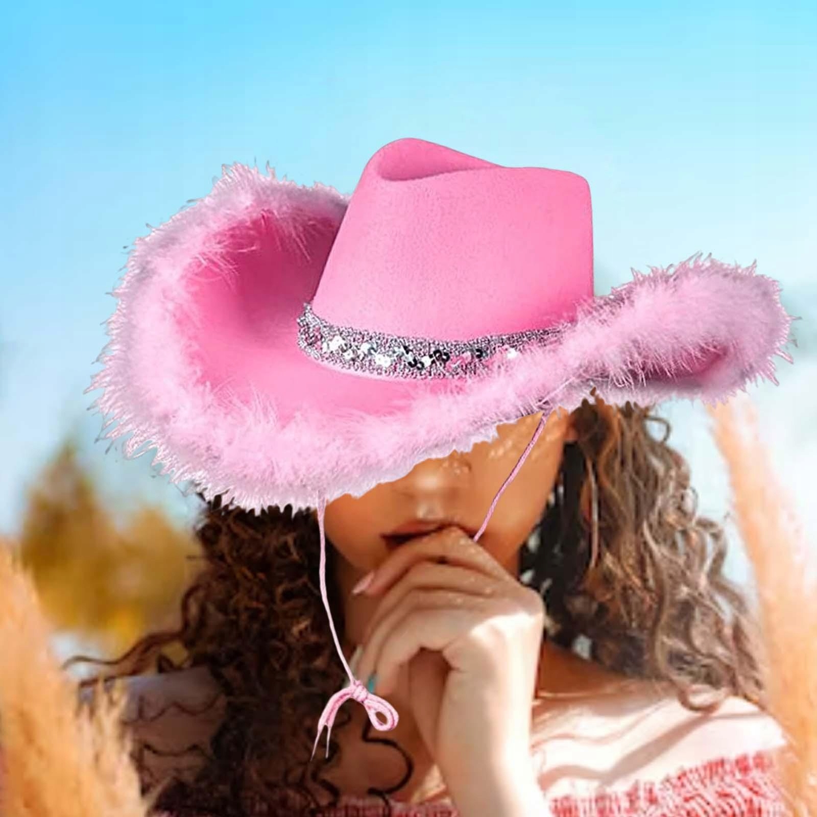 Стильний рожевий ковбойський капелюх Елегантний ковбойський капелюх з широким обмеженням для дівчат на вечірку