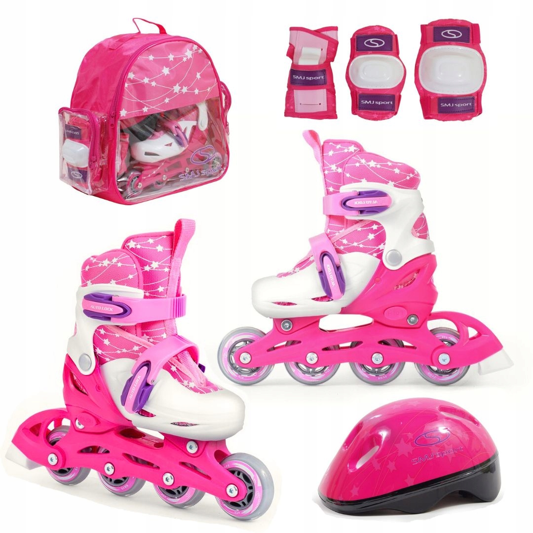 РОЖЕВИЙ НАБІР РОЛИКІВ + ШОЛОМ + ПРОТЕКТОРИ РОЗМІР. 30-33 SMJ SPORT