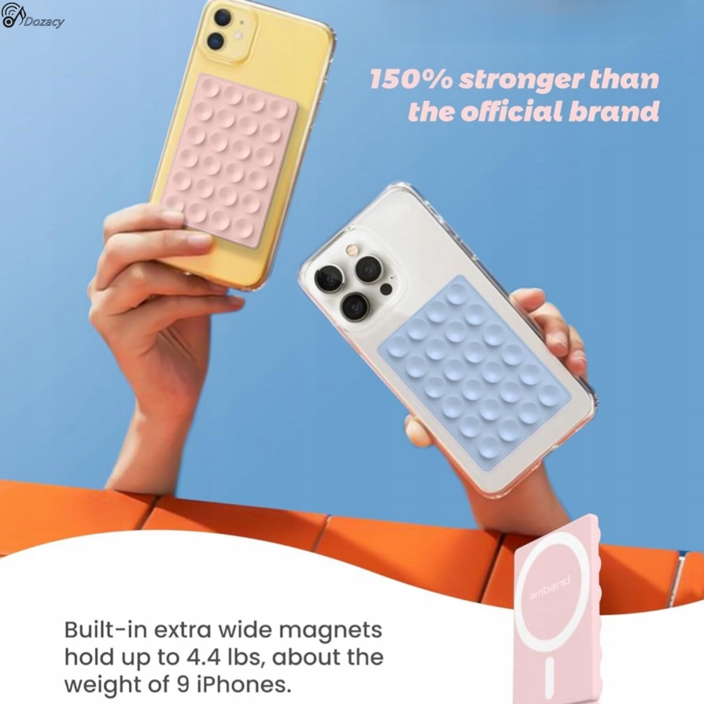 Вбудовані надзвичайно широкі сильні неодимові магніти забезпечують надійне та довговічне кріплення. Його легко надягати, коли він вам потрібен, і легко знімати для бездротової зарядки за допомогою MagSafe без залишків клею.