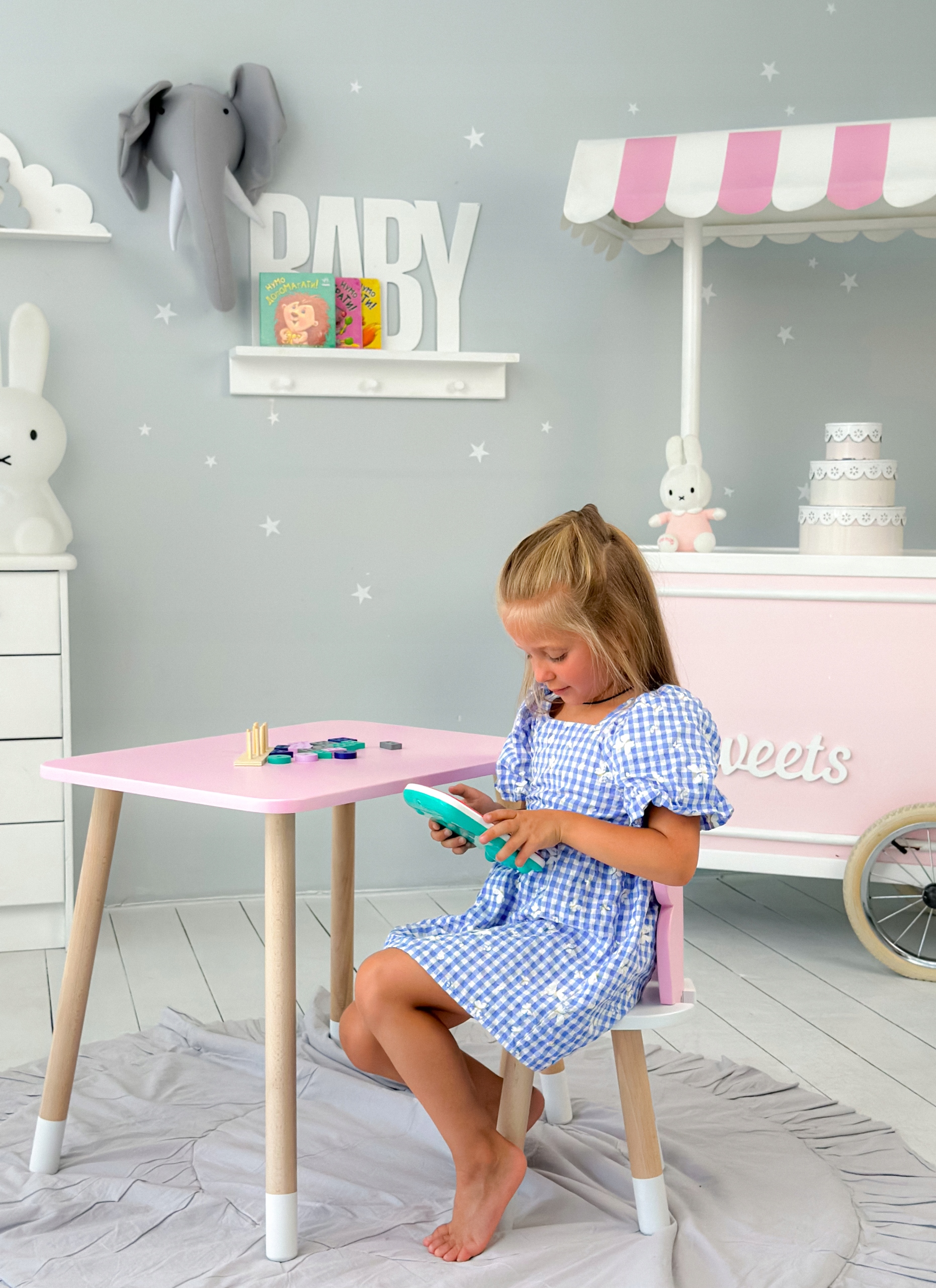 Додайте трохи магії до кімнати своєї дитини завдяки рожевому набору, який познайомить радість та творчість повсякденним заходам . Стіл і стілець не тільки красиві, але й практичні , ідеально підходять до потреб маленьких користувачів. Це чудовий подарунок, який зробить кожен момент, проведений на навчання чи гри, буде ще приємнішим!