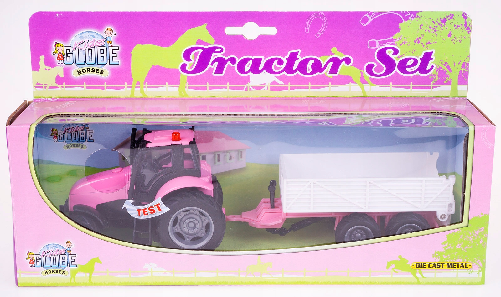 ТРАКТОР 1:50 РОЗЕВИЙ З ПРИЧЕПОМ МОДЕЛЬ СВІТЛО ЗВУК ПРИВОД ФРИКЦІОННИЙ FARMA 510241