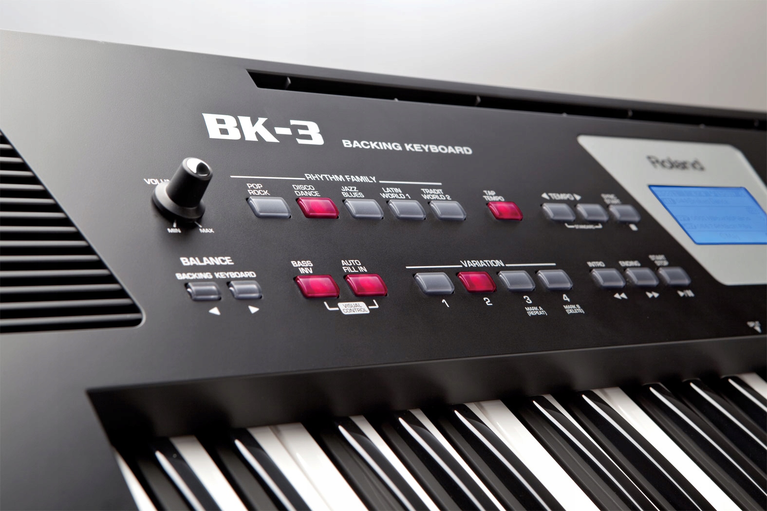 Roland BK-3 пропонує звуки 850 , 50 наборів барабанів та 250 ритмів, згрупованих тематично, враховуючи музичні стилі зі Східної Європи, Латинської Америки та Азії. Завдяки сумісності з GM2, GS та XG Lite - ви можете грати файли MIDI у відмінній якості.
