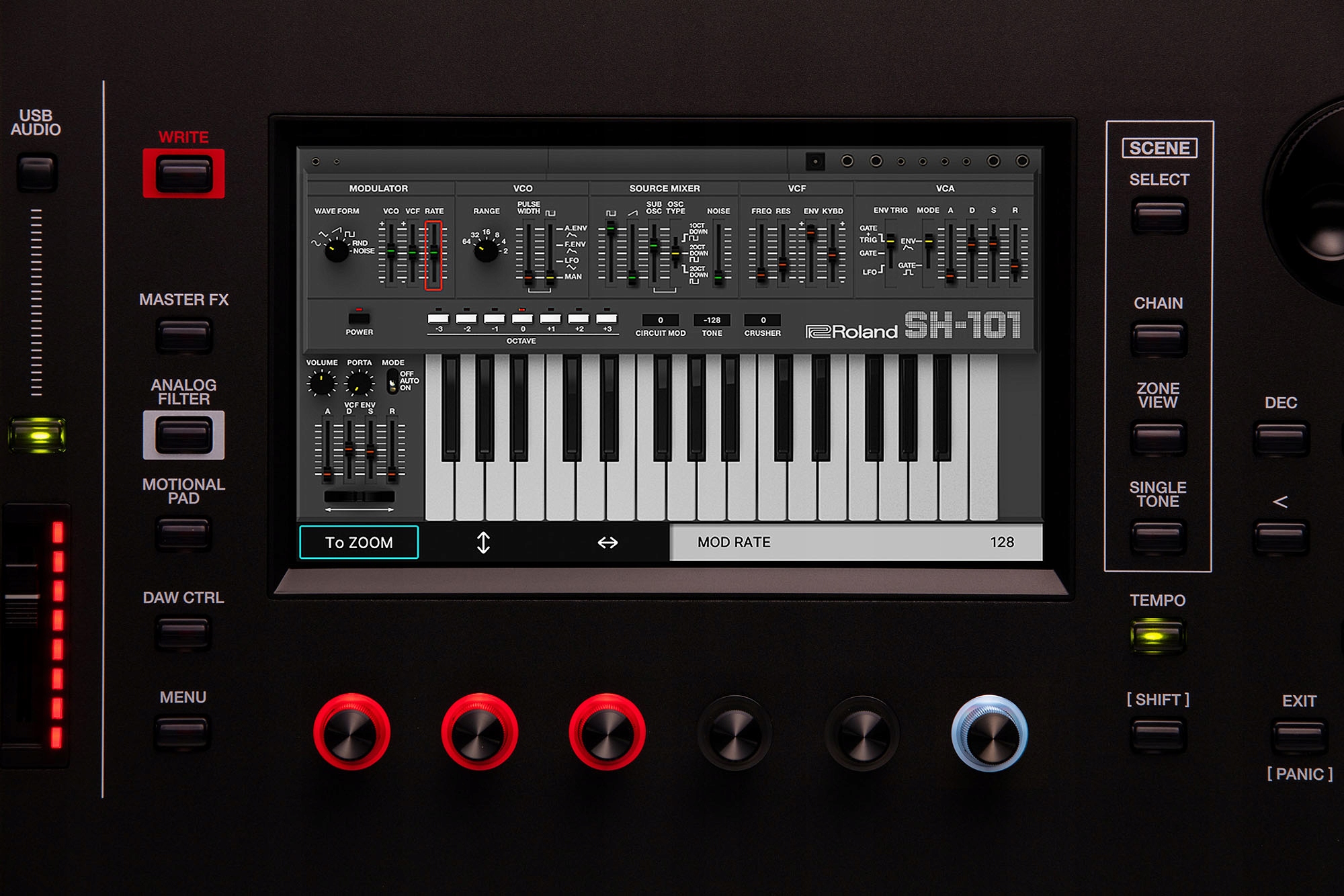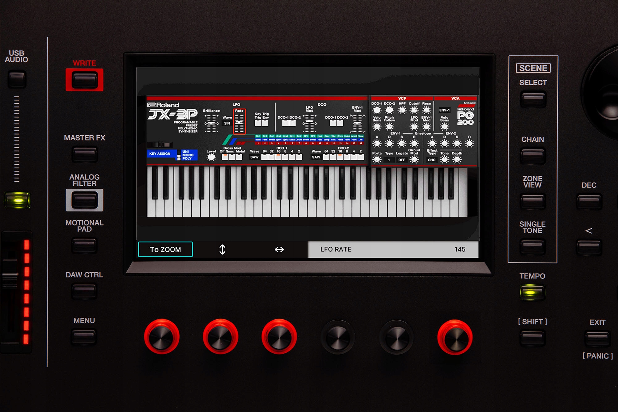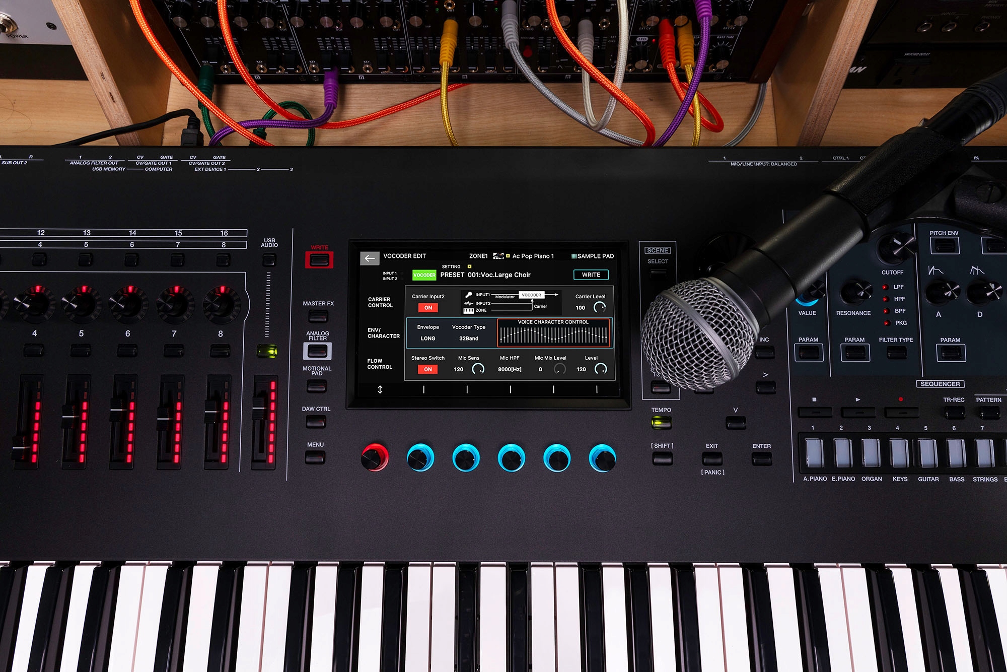 FANTOM EXстворений для того, щоб стати центральною частиною будь-якого виробничого середовища. Користувачі можуть безпосередньо формувати звуки та розвивати музичні ідеї за допомогою зручної ергономічної панелі, наповненої кнопками, ручками та повзунками. Кольоровий сенсорний екран динамічно змінюється відповідно до поточного завдання, і тепер ви можете персоналізувати його зовнішній вигляд, імпортувавши власні зображення на заставку та розпочавши перегляд.