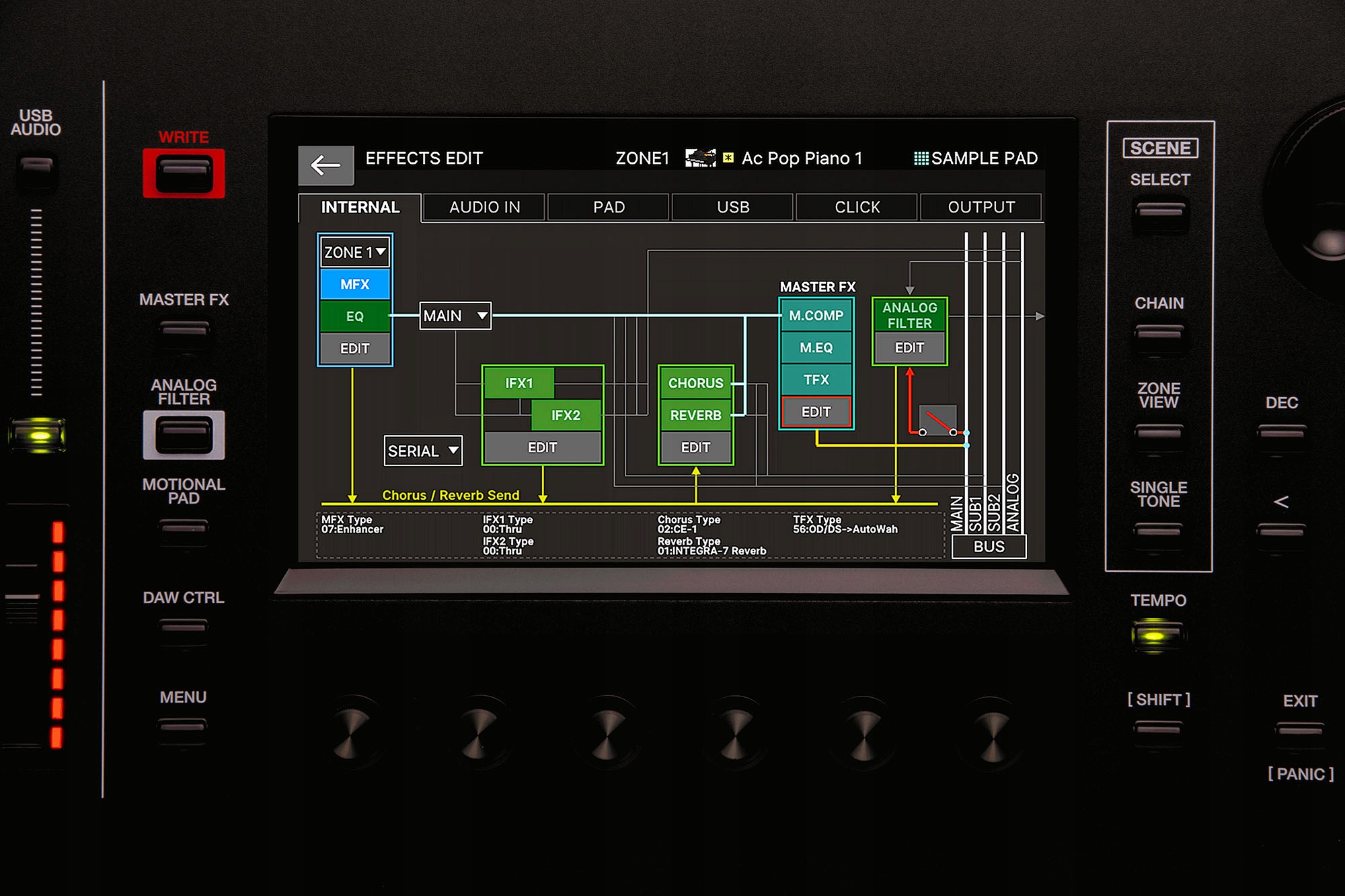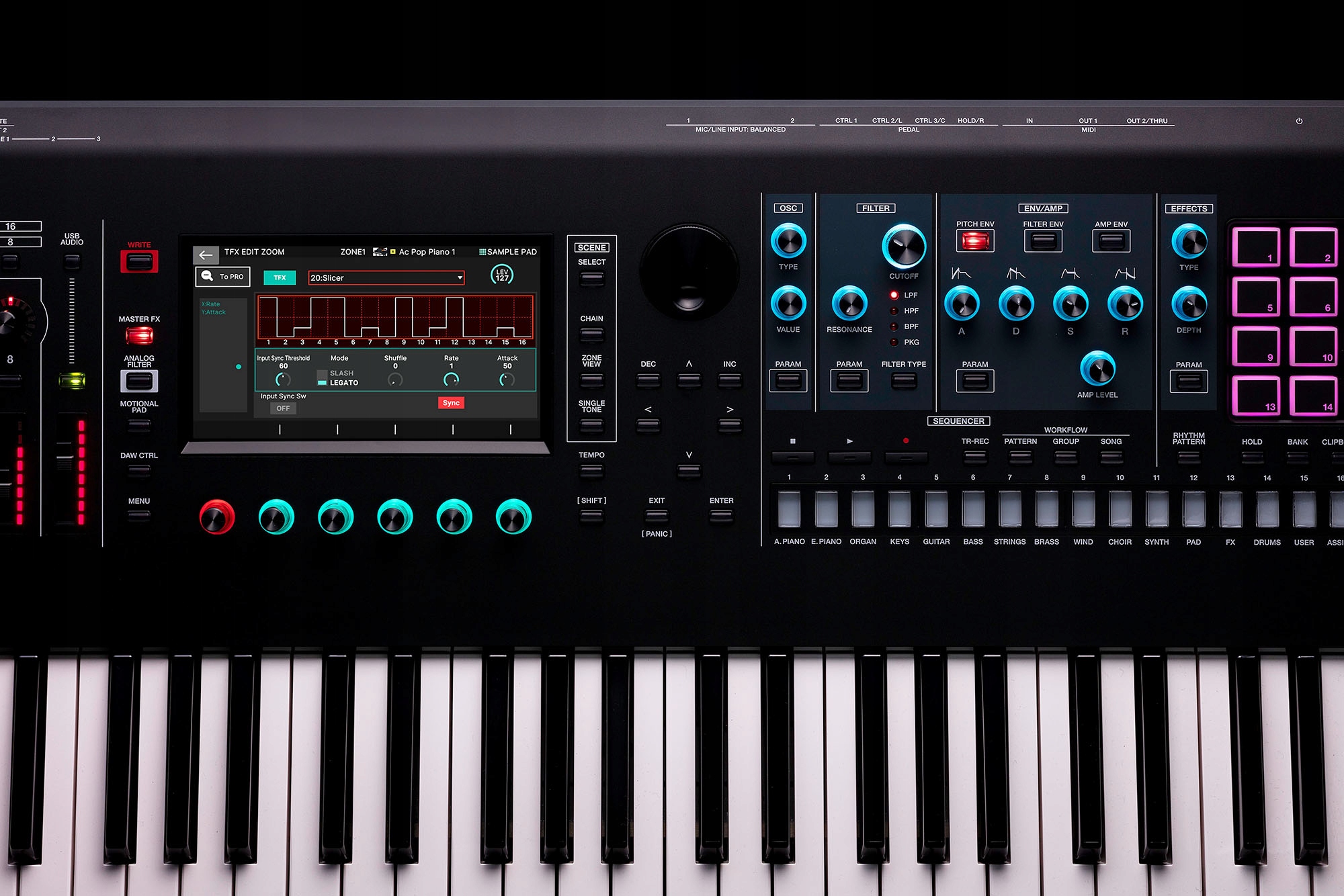 Унікальні потужні процесори в FANTOM EXзабезпечують плавне і точне виконання з великою кількістю накладних витрат, забезпечуючи велику кількість поліфонії та повну підтримку патчів для плавних переходів. Доступні десятки одночасних ефектів, включаючи нову реверберацію студійного класу та оновлений Master FX для формування загального звуку. Також є відмінний аналоговий фільтр, який ідеально підходить для того, щоб надати вашим звукам додаткову теплоту та зернистість.