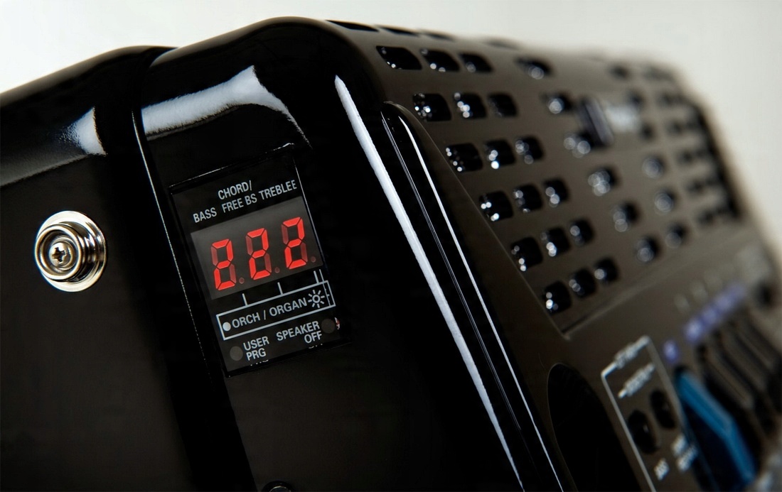 Завдяки новому покоління динаміків, вбудованих в інструмент, і розширеного 7-сегментного / 3-символьного дисплея, клавіатура та кнопка FR-1x встановлює новий стандарт для маленьких і легких акордеонів.