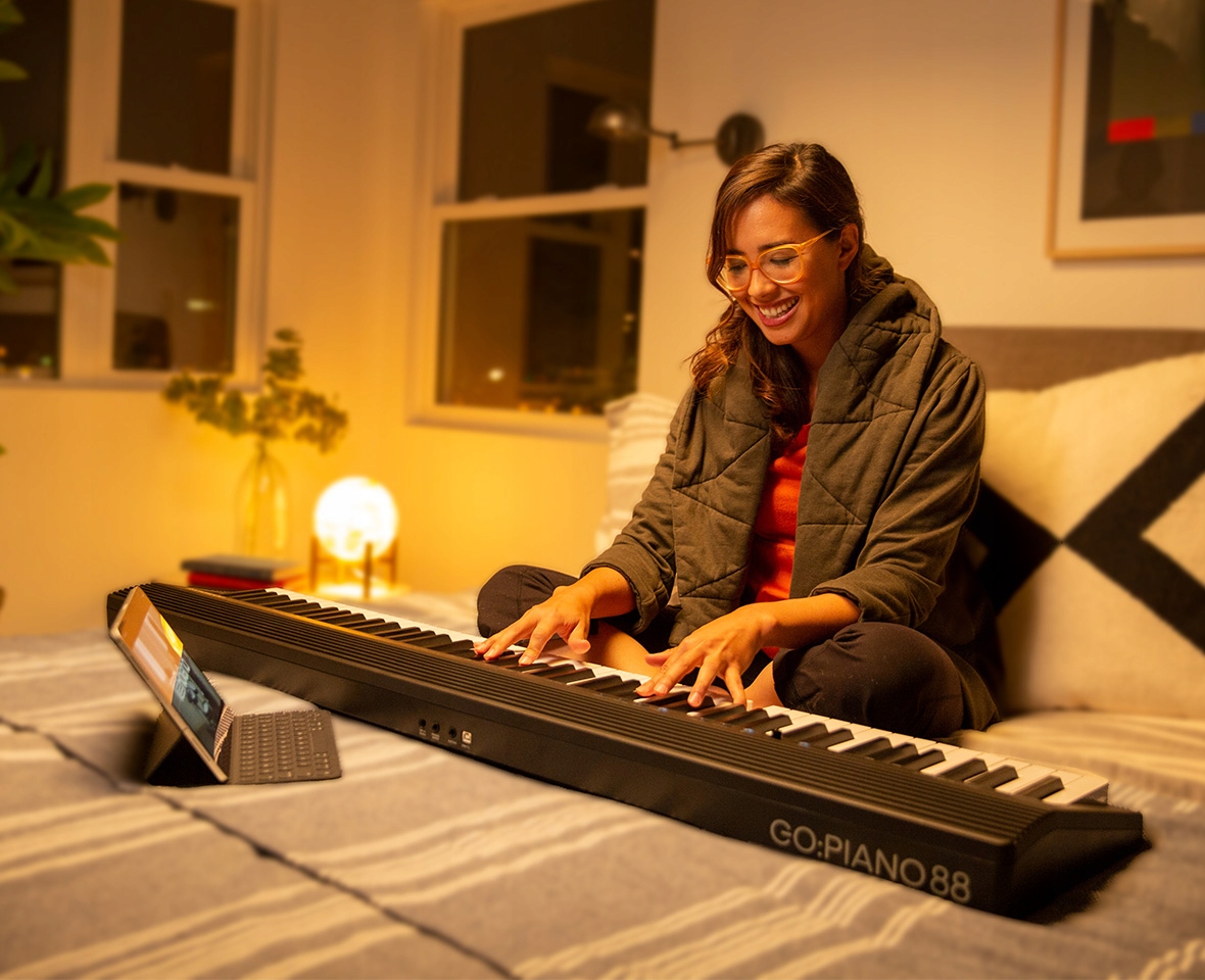 Акустичне піаніно обмежує вас одним місцем, тоді як портативні електронні клавіатури обмежують типи музики, які ви можете грати за допомогою меншої клавіатури. Завдяки GO:PIANO88 і вашому смартфону ви будете готові створювати музику щоразу, коли відчуєте натхнення. Завдяки малій вазі (7,0 кг) і заряду батареї Go:PIANO88 дозволяє грати в навушниках або через колонки. Крім того, завдяки бездротовому з’єднанню зі смартфоном ви можете працювати над своїми навичками будь-де та будь-коли, а 88 клавіш означають, що вам не потрібно йти на компроміс за рахунок техніки.