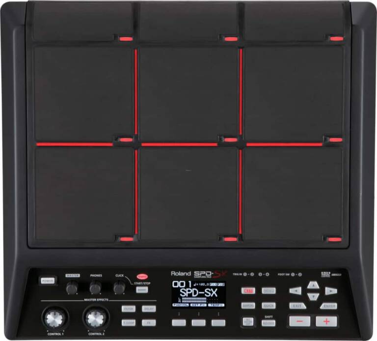 SPD-SX має дев'ять дуже чутливих гумових прокладок і дві ручки та чотири кнопки, присвячені ефектам у режимі реального часу. Остання технологія тригера Roland гарантує виняткову точність та повний динамічний контроль, а великий освітлений РК -дисплей забезпечує читабельність у будь -яких умовах. Світлодіодні сигнальні пристрої розміщують по одному на кожній прокладці, повідомте про поточний стан. Коли спрацьовують фрази, світлодіоди світять, що показує, який PAD в даний час грає звук, а який ні. Крім того, інтенсивність світлодіодного світла змінюється залежно від рівня звуку (як і індикатор рівня в змішувачах). Червоні лінії з високим контрастом збільшують видимість прокладок на сцені.