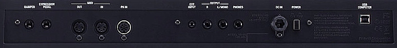 На задній панелі інструмент пропонує професійний набір роз'ємів. Гнізда обох педалей повністю налаштовані та забезпечують контроль над багатьма ефектами та функціями інструменту.