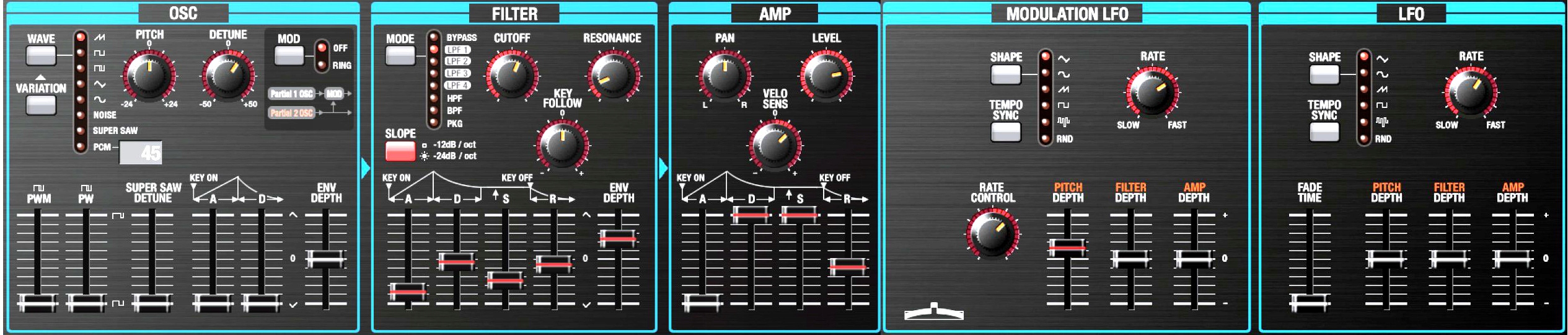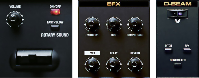 Звуковий розділ кожного інструменту має незалежне управління гучністю рівня. Велика кількість контролерів - кнопки, ручки, повзунки та T.D. - забезпечує контроль над звуком, ефектами та функціями інструменту без зайвого введення в меню.