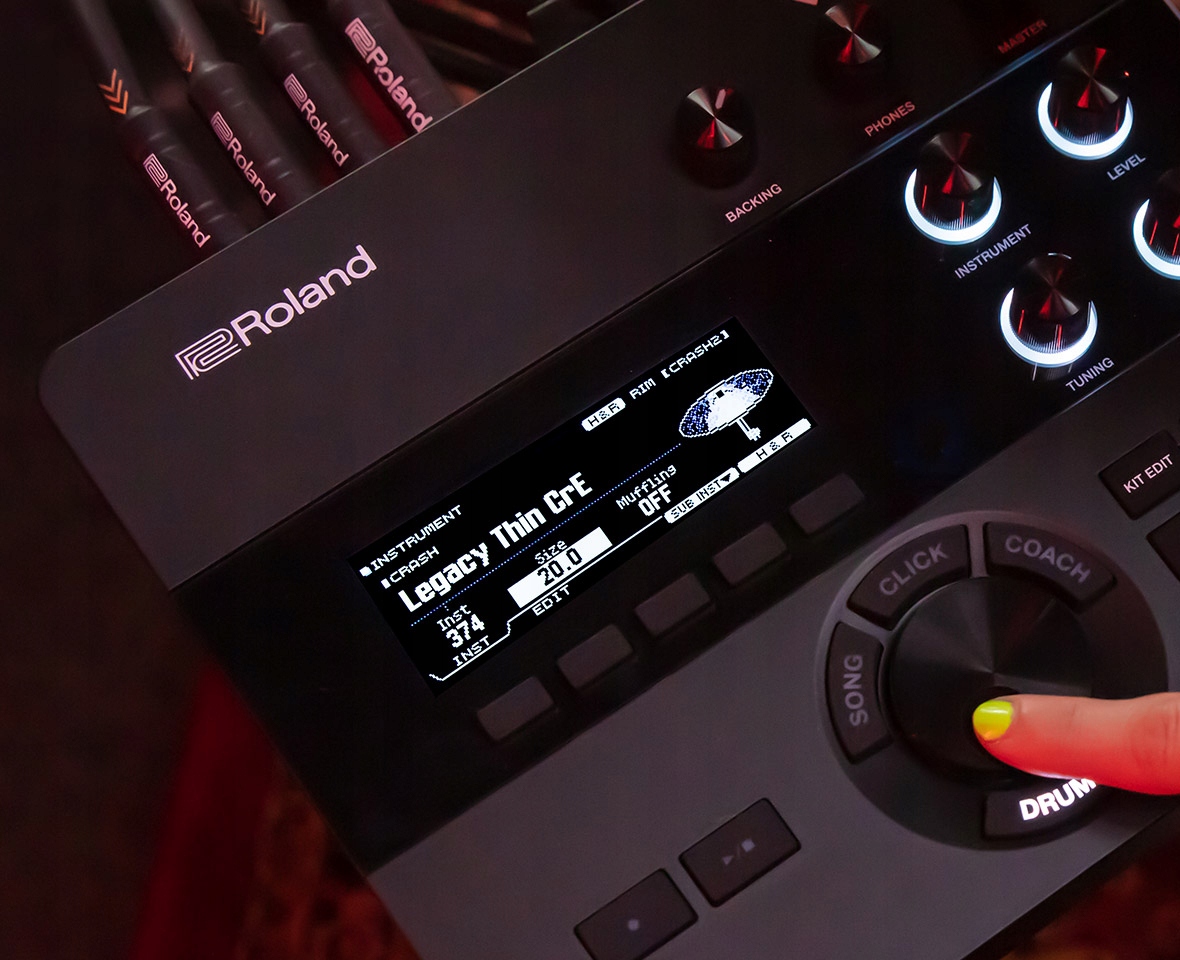 В акустичних барабанах ви налаштовуєте звук відповідно до своїх потреб, змінюючи типи головок, регулюючи налаштування, застосовуючи демпфування, покращуючи натяг малого барабана, змінюючи бітер тощо. Все це можливо завдяки модулю TD-27, що дозволяє створювати унікальні набори для будь-якої ситуації. Просто торкніться панелі, щоб вибрати її, а потім скористайтеся практичними та інтуїтивно зрозумілими інструментами редагування, щоб отримати звук, який вам подобається. Ваші зміни зберігаються автоматично, тому ви можете зосередитися на грі. Ви можете завантажувати власні зразки та накладати внутрішні звуки, щоб ще більше персоналізувати свої комплекти.