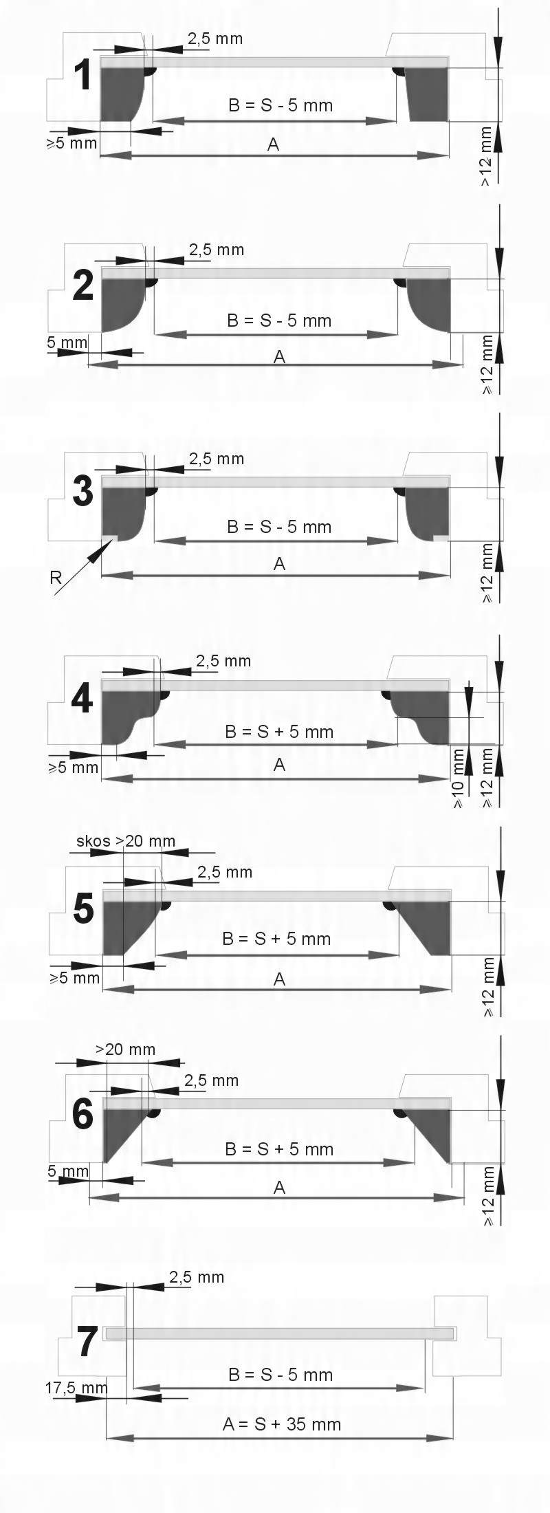 5. вимірювання для смуги з широким фасом і плоскою поверхнею, що дорівнює або перевищує 5 мм