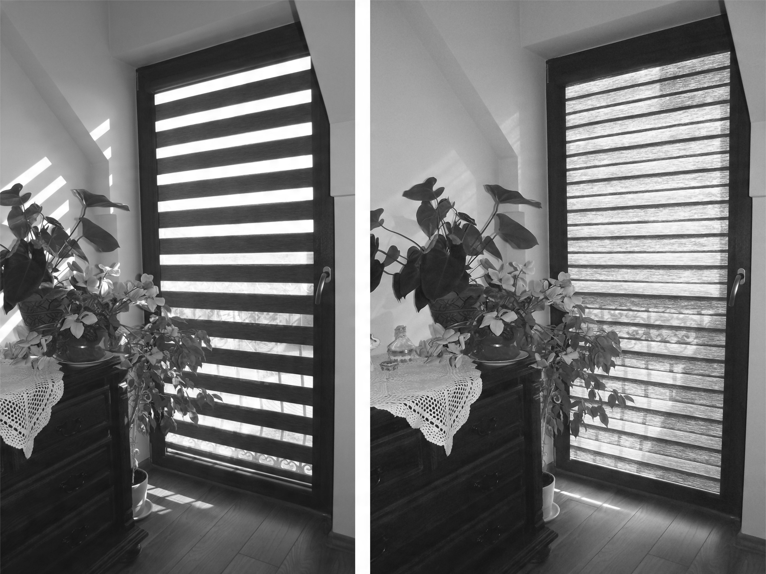 - На цьому аукціоні ми пропонуємо смугасту тканину «День-ніч». Денні та нічні тканини забезпечують плавне регулювання світлового потоку. Вам не потрібно згортати всю рулонну штору, щоб дивитися у вікно.