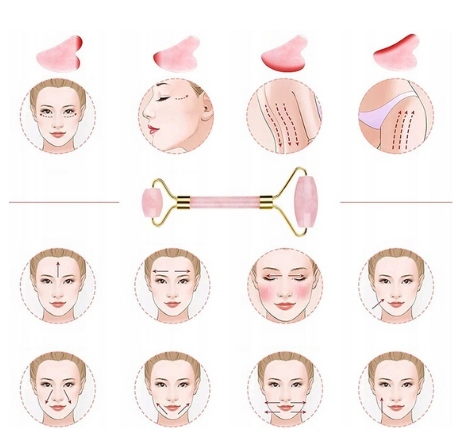 Ролик + масажний камінь для обличчя рожевий кварц GUA SHA + НАБІР РОЛИКІВ