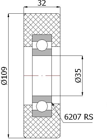 РОЛИК 109 мм ПОЛІУРЕТАНОВИЙ ВАЛИК 32 мм