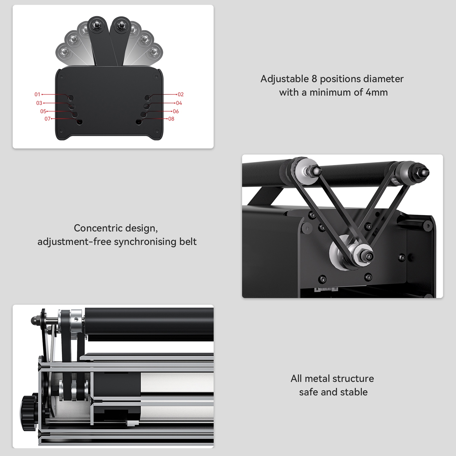 Концентрична конструкція, зубчастий ремінь можна вільно регулювати.