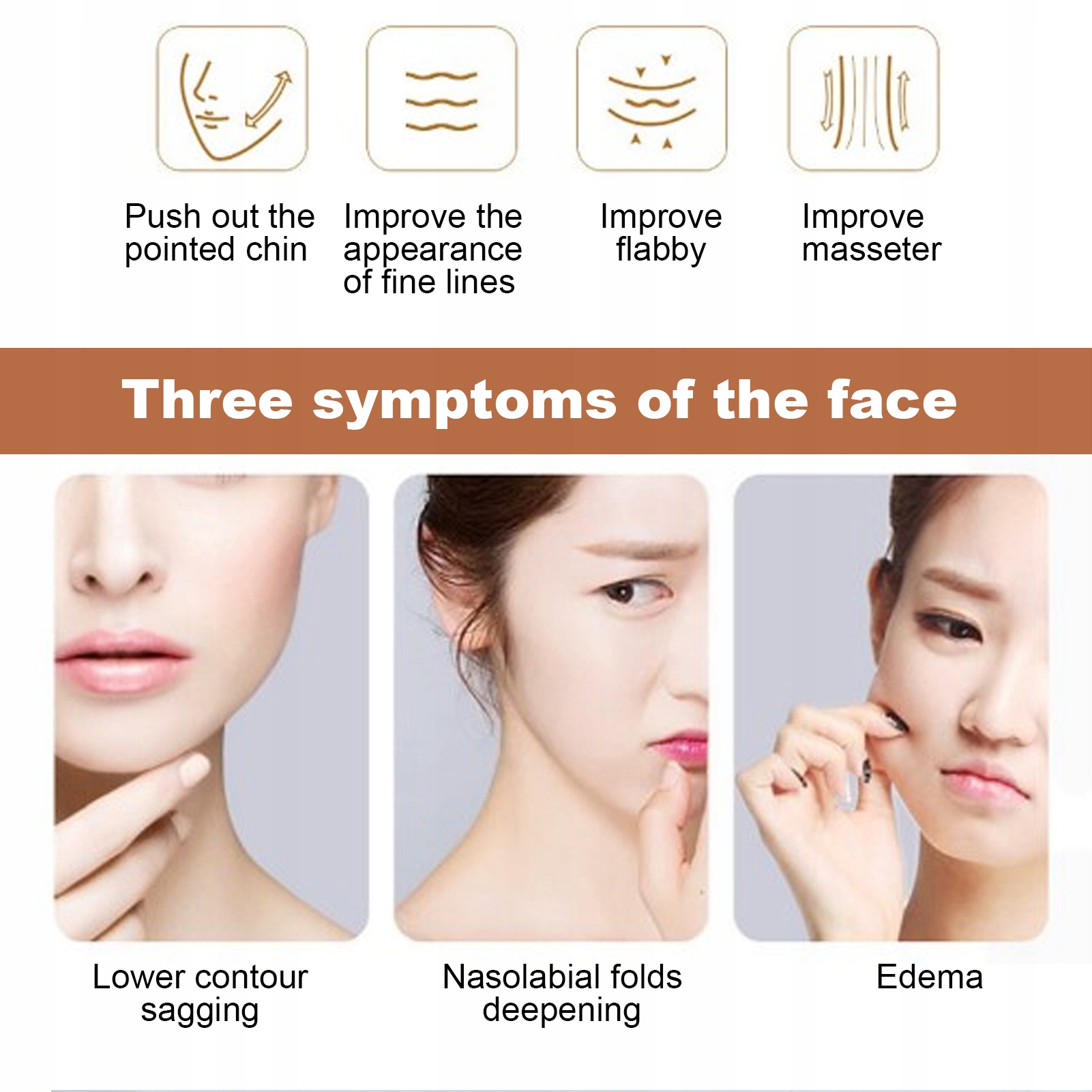 1 、 тінь V -укладене обличчя, підняти та затягнути, замісити та масаж, а також поглинання підтримки.