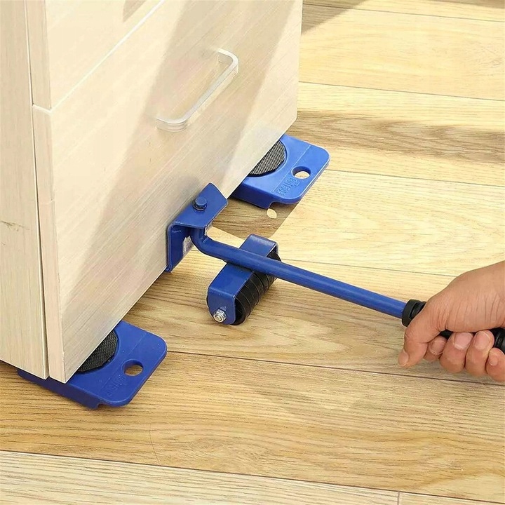 Пластикові підставки з роликами, призначені для транспортування та розміщення меблів або інших вантажів вагою до 150 кг. Сталевий важіль використовується для підйому вантажу перед установкою підставок із роликами.