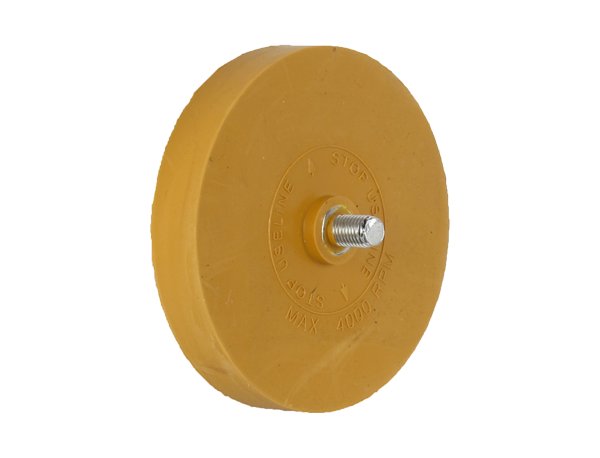 Твердий гумовий диск для механічного видалення двосторонніх скотчів, наклейок і декоративних планок з корпусу. При видаленні клею диск не дряпає і не пошкоджує верхній шар фарби. Він кріпиться до шліфувальних машин і дрилів за допомогою адаптера.