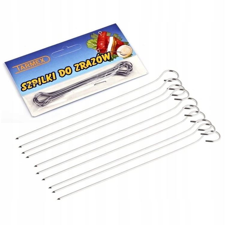 Зрази - незамінний інструмент при приготуванні вишуканих страв. Шпильки виготовлені з високоякісного металу. Булавки довгі, тонкі та гострі. Голки дозволяють точно і надійно з'єднувати інгредієнти для рулетів або рулетів. Завдяки їм страва зберігає форму під час запікання, що забезпечує рівномірну підготовку м'яса. Практичні у використанні шпильки-блискавки є важливим аксесуаром на кожній кухні.