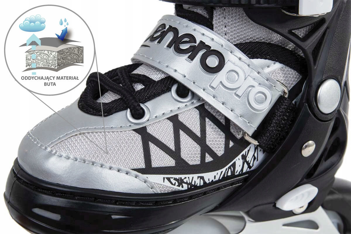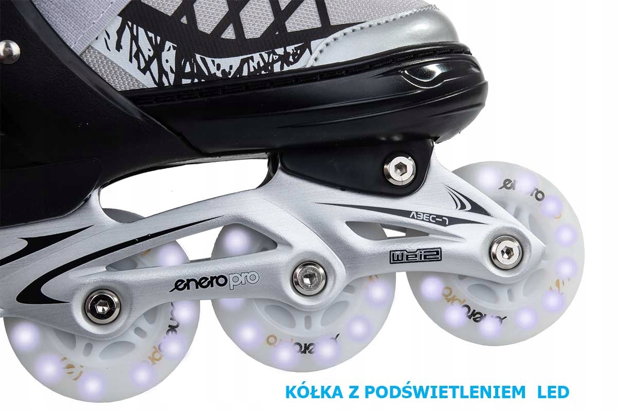 Роликові ковзани - Роликові ковзани - 4-В-1 ENERO PRO LED КОВЗАНИ гарантують справжнє задоволення від катання. Роликові ковзани, роликові ковзани та 3 SKATE оснащені легкими та міцними алюмінієвими полозами, гальмом, молочними колесами діаметром 64 мм з білими світлодіодними ліхтарями, трьома регульованими кріпленнями та 3-ступінчастим регулюванням розміру. Колеса та підшипники класу ABEC7 забезпечують нижчий опір коченню та можуть використовуватися для довгих дистанцій та розважальних поїздок. Посилений верх взуття, захищений водонепроникним шаром, широкий, зручний крій і м'яка накладка навколо щиколотки значно підвищують комфорт використання під час катання. Полижні для катання виготовлені з міцного металу, стійкого до пошкоджень та іржі.