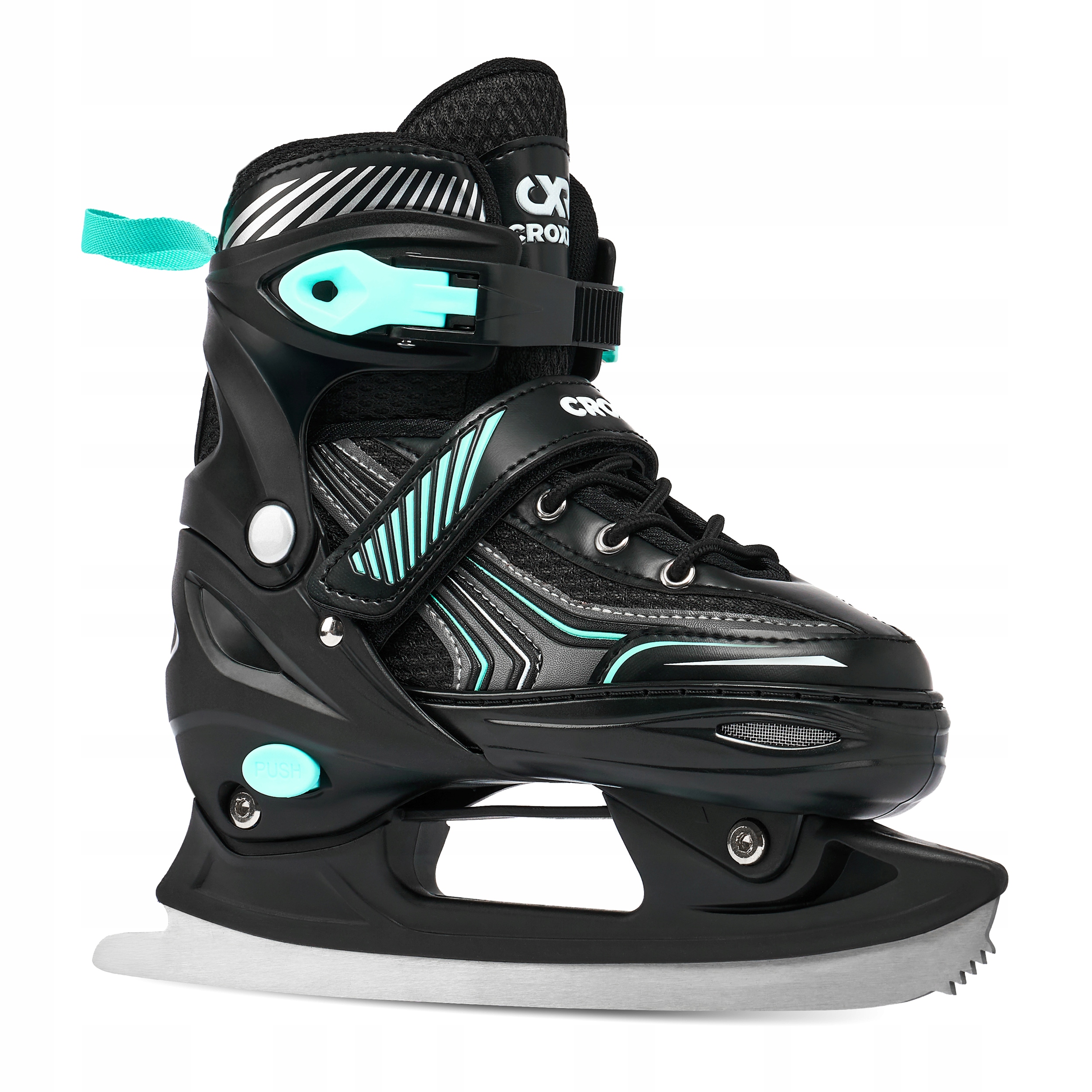 Застібки, пряжка з зубчастим ременем і засув забезпечують правильне затягування і надійне утримання ноги у взутті, запобігають рух ноги і гарантують безпечне водіння. Застібки на ковзанах Croxer мають кнопку, яка запобігає їх відкриванню під час катання. Ремінець на липучці утримує шнурки на місці, запобігаючи їх випадковому розв’язуванню.