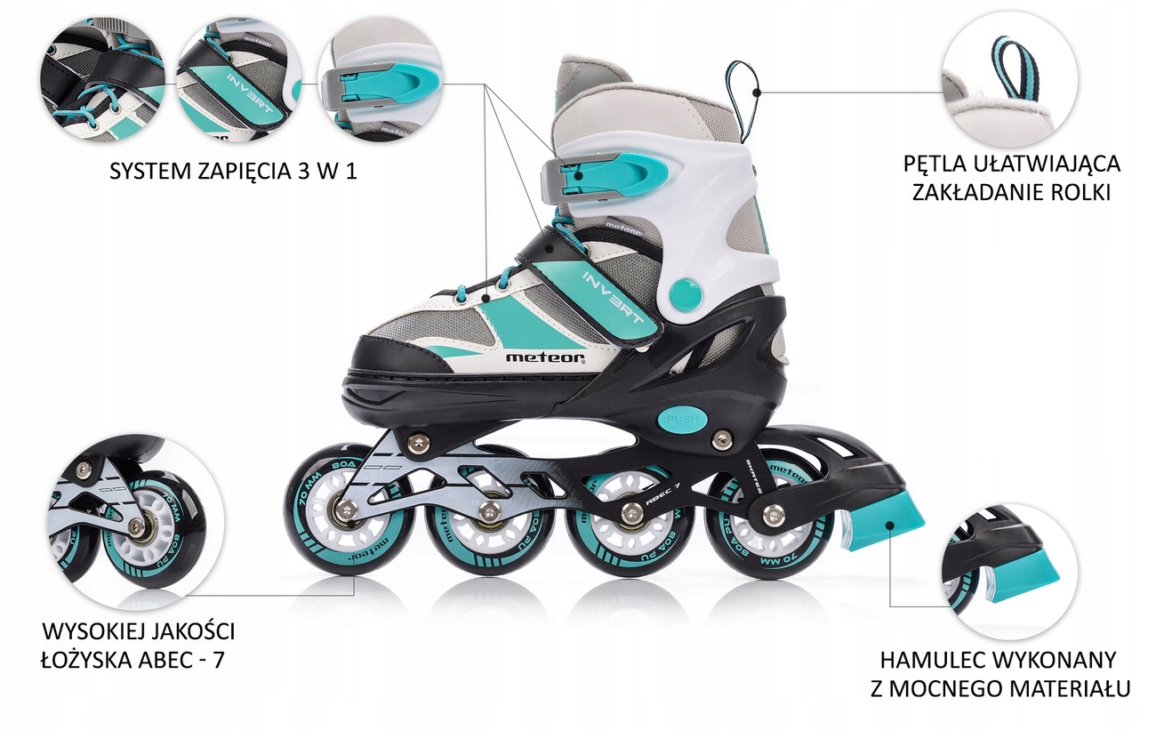 Ковзани, роликові ковзани, роликові ковзани та роликові ковзани в одному? Знайомтеся з Meteor - практичним рішенням для найвибагливіших маленьких спортсменів! Це найкращий вибір, який має можливість регулювання розміру. Завдяки цьому роликові ковзани ростуть разом з вашою дитиною, і вам не доведеться кожні кілька місяців купувати нову пару. Швидке і безпроблемне регулювання займає буквально кілька секунд і дозволяє правильно розташувати взуття по відношенню до ніжки дитини.