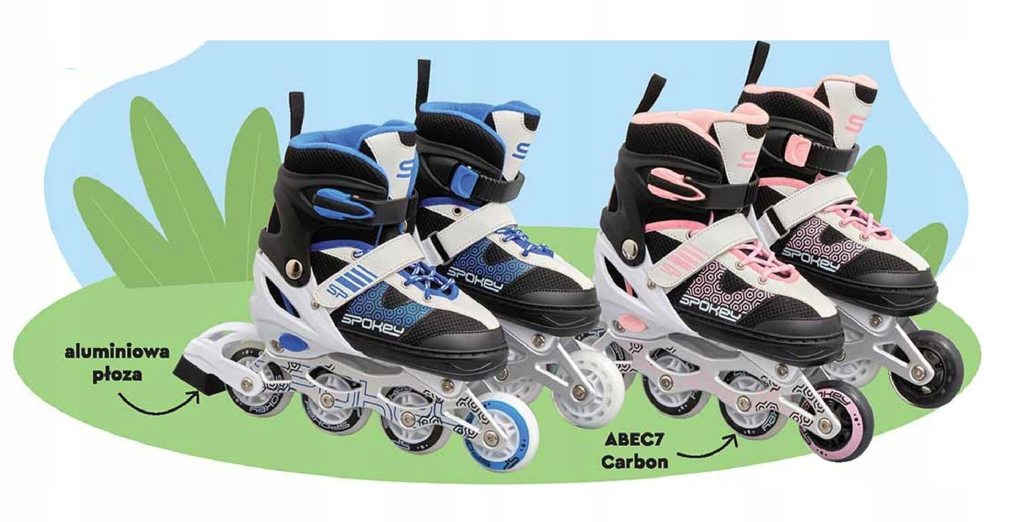 Роликові ковзани Spokey TONY - це Модель створена спеціально для дітей. Це оптимальний вибір для тих, хто ще росте, а також тих, у кого проблемний розмір «на межі». Роликові ковзани були підготовлені з найвищою точністю та увагою до безпеки під час катання - вони мають алюмінієву версію полозів, що забезпечує довговічність, зберігаючи дуже малу вагу. Завдяки цьому вони стійкі до пошкоджень, дуже міцні та дозволяють комфортно пересуватися. Колеса виготовлені з міцного ПУ з твердістю, оптимальною для рекреаційного катання (82A). Все це оснащено вуглецевими підшипниками ABEC7, які забезпечують високі швидкості, зберігаючи чудову довговічність роликів.