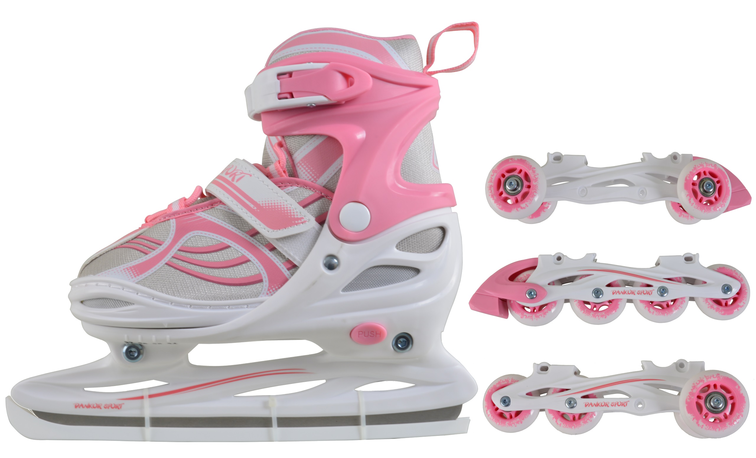 Ковзани, роликові ковзани, роликові ковзани, роликові ковзани в одному. Ідеальне рішення для людей, які цінують корисність продуктів і люблять активно проводити час як взимку, так і влітку. Роликові ковзани призначені для спортивного та розважального катання як для початківців, так і для користувачів середнього рівня.