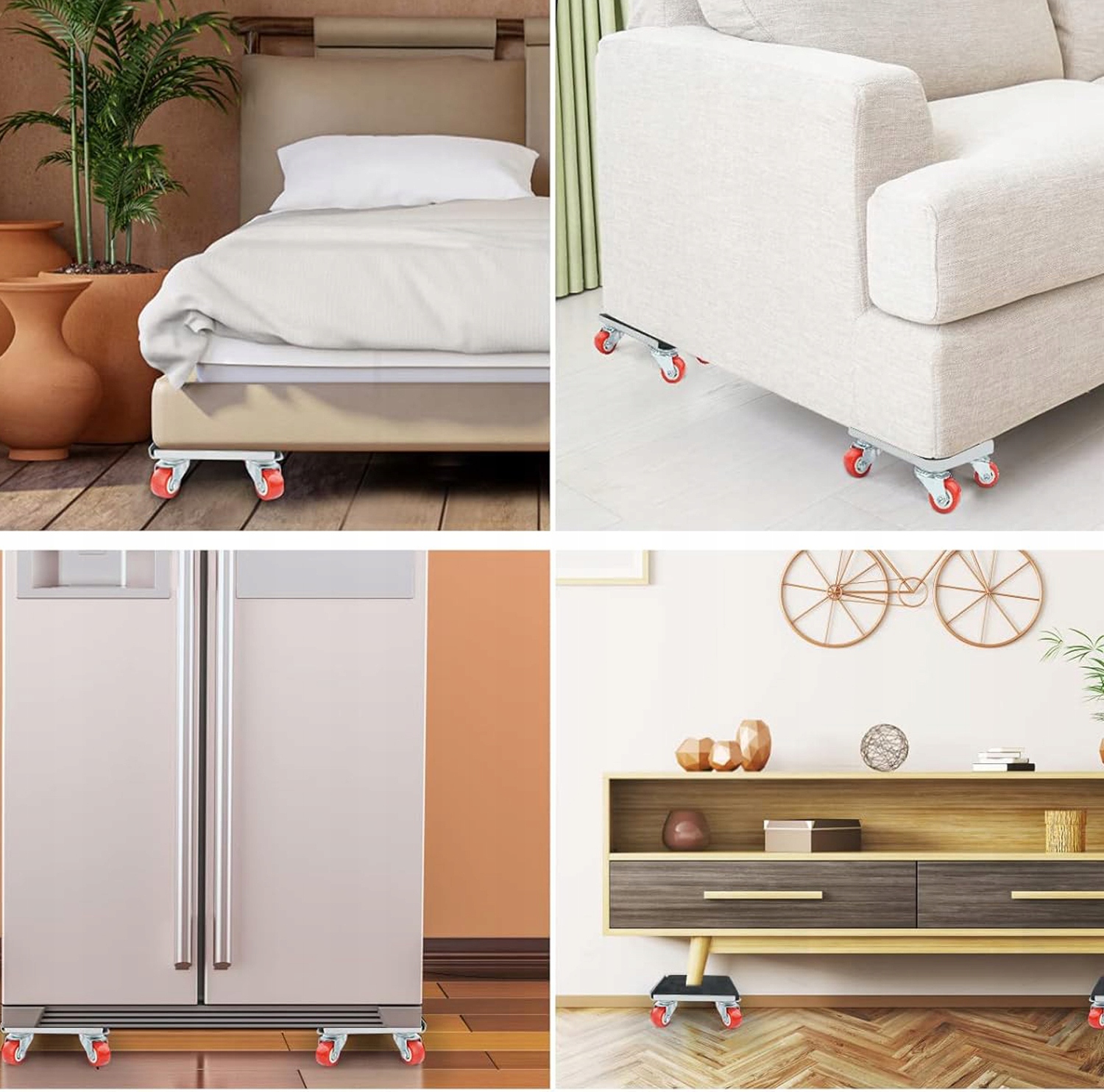 ✅ Транспортуйте 360 °: Завдяки суцільним кульковим підшипникам меблів, їх можна обертати на 360 градусів у всіх напрямках. Завдяки цьому рух меблів стає надзвичайно простим. 4 Весь набір обладнання є міцним і довговічним, він може переміщувати і переміщувати важкі предмети вагою до 600 кг.