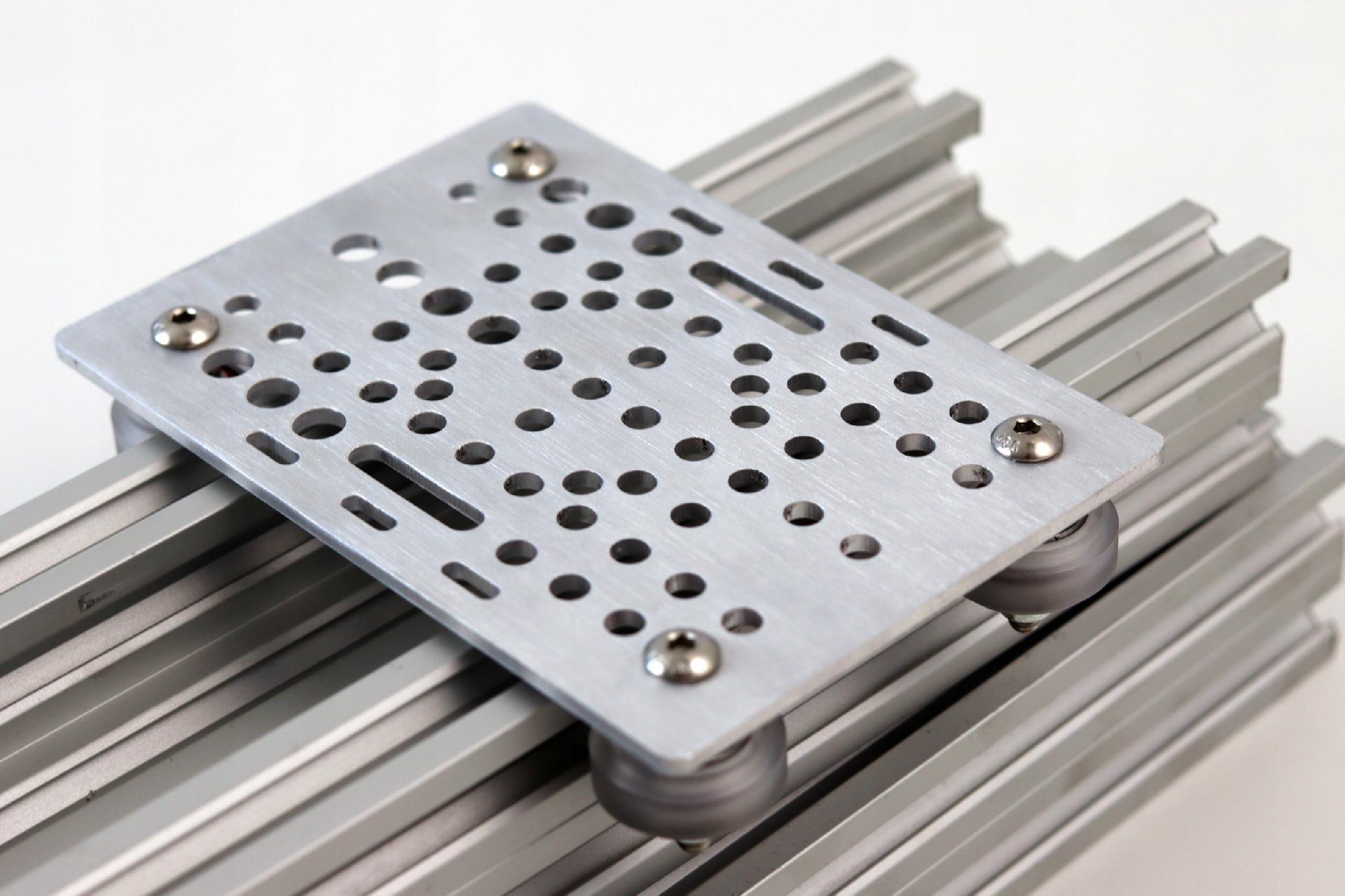 ✔️ Завдяки наявності великої кількості отворів в пластині, є можливість вільно конфігурувати ролики (до 6 шт.), а також вільно модифікувати візок додатковими елементами