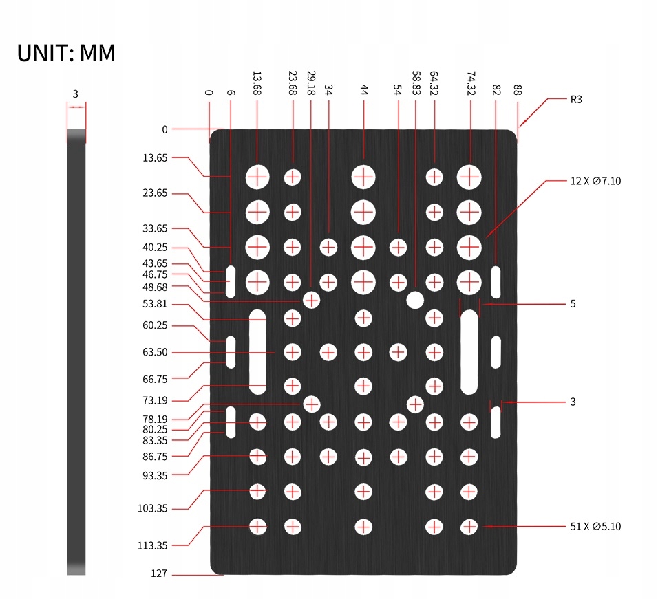 - універсальна - має багато отворів, у які можна встановити ролики V-SLOT(створення лінійних візків), таінші елементи (прикріплені, наприклад, до цих візків)