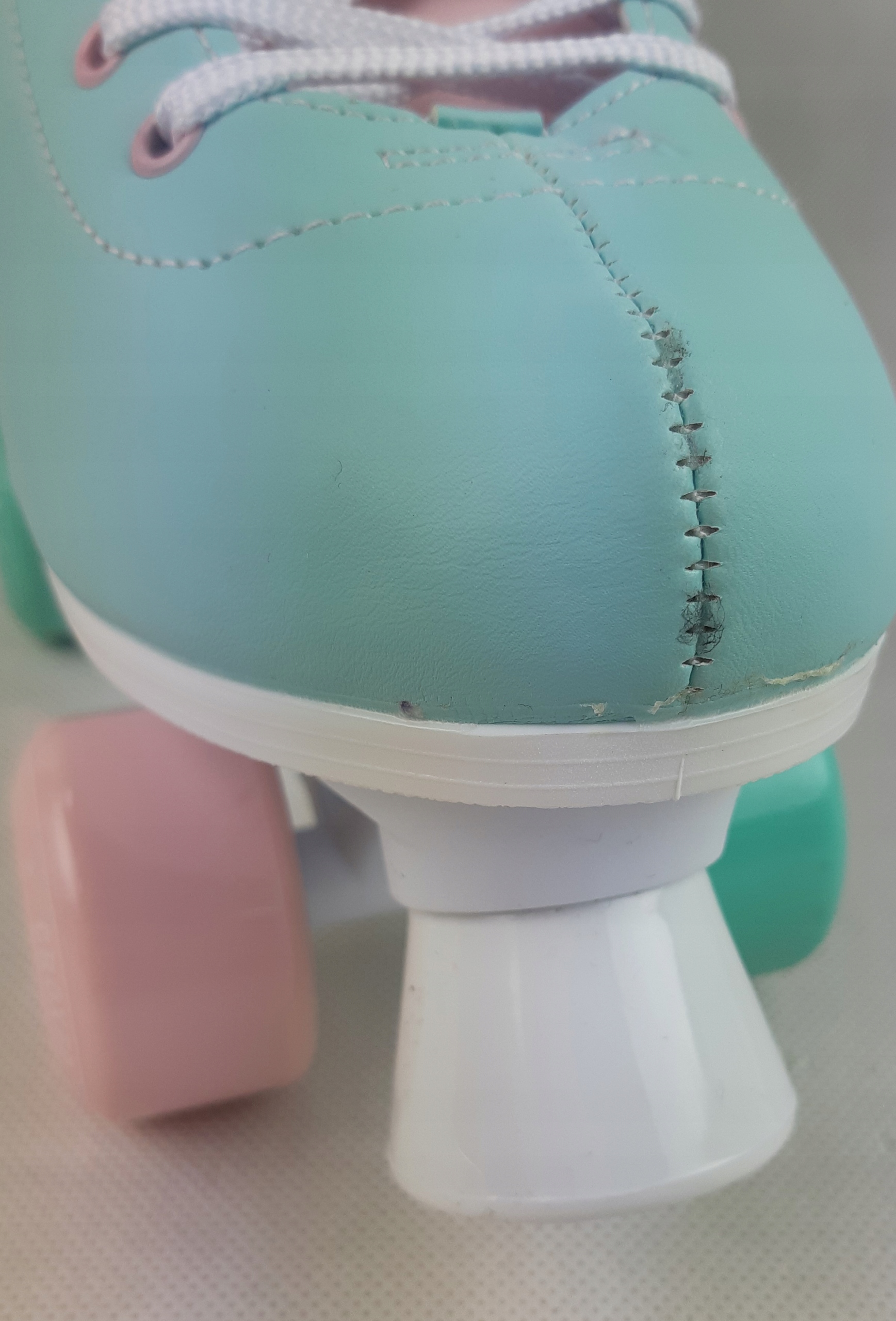 Роликові ковзани використовуються в оригінальній зношеній упаковці. На роликових ковзанах є бруд і подряпини.