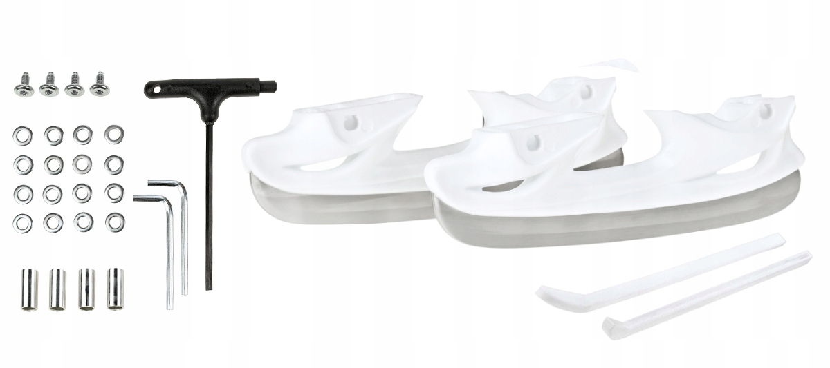 Keys and longer axles Відкрутіть колеса та встановлення їх з обох боків валика, щоб отримати потрібну конфігурацію. Це полегшує перші кроки на роликових ковзанах, допомагає підтримувати рівновагу та зменшує можливість перекидання.