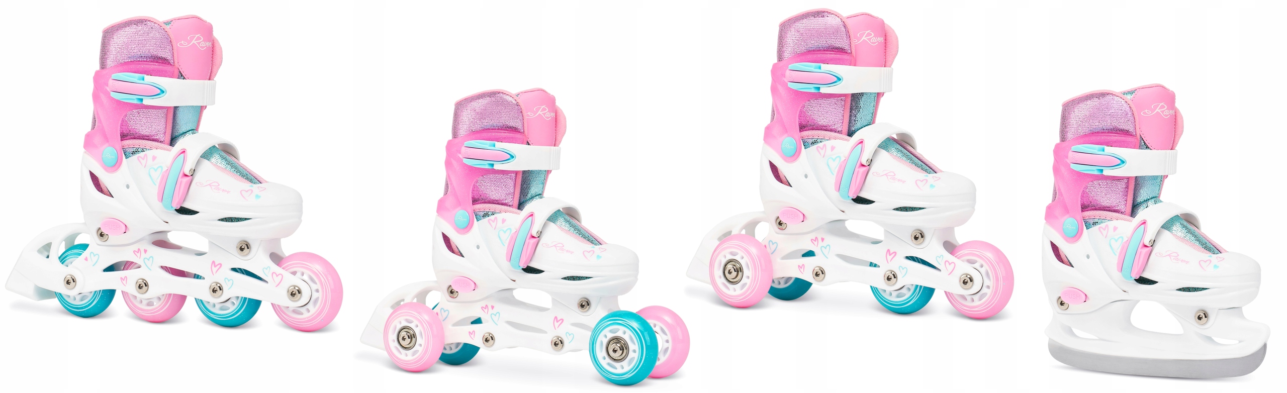 Роликові ковзани хокей 4in1 Raven Loret блиск білий/м'ятний/рожевий 30-33