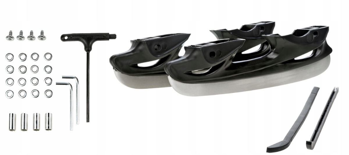 Гайкові ключі, гвинти та довші осі, що дозволяють відкручувати колеса та встановлювати їх з обох боків ролика полоз для отримання потрібної конфігурації. Це полегшує перші кроки на роликах, допомагає підтримувати рівновагу та зменшує ймовірність падіння.