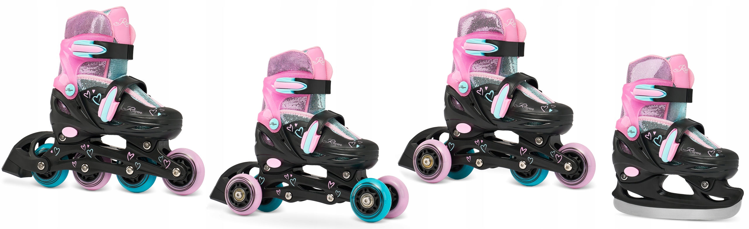 Роликові ковзани Хокейні ковзани 4в1 RAVEN Loret Glitter Black/Mint/Pink 27-30