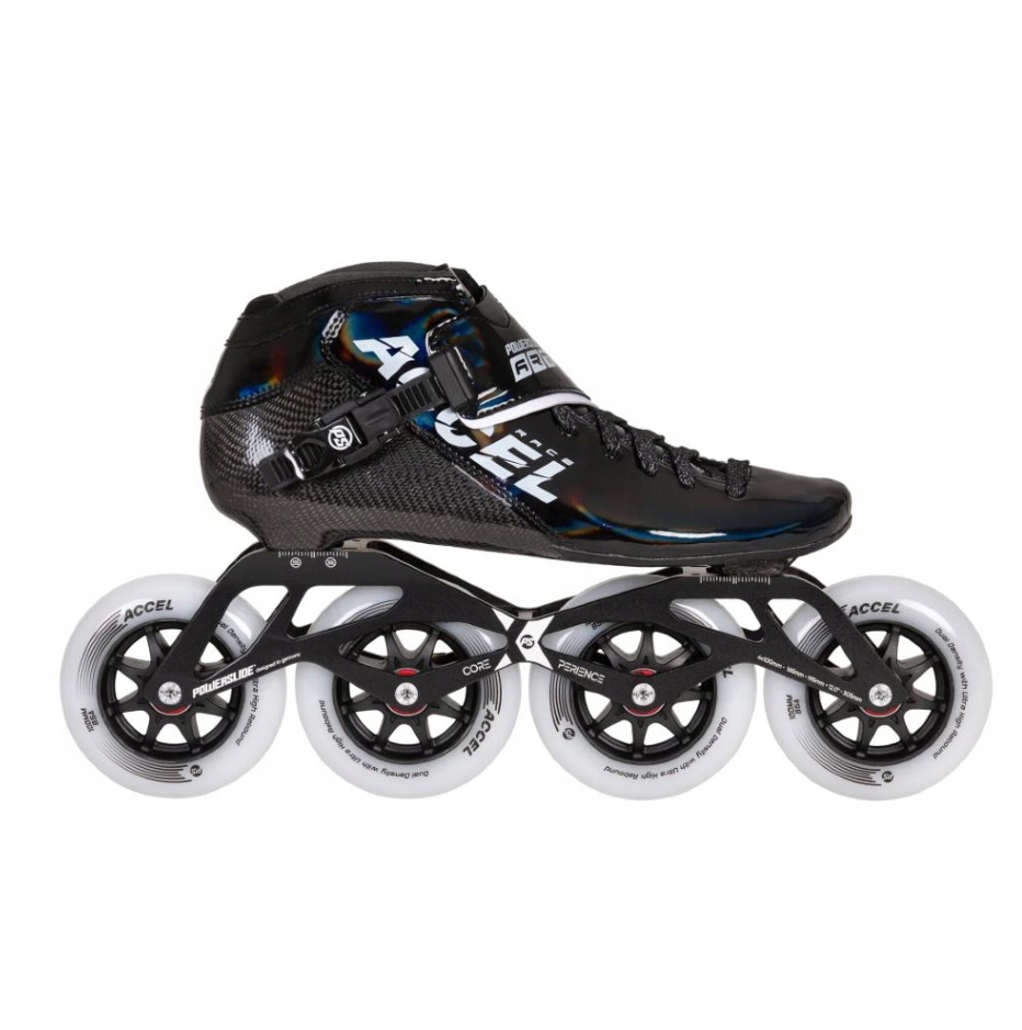 Ковзани Powerslide Accel Race Black 100 мають легкі та термоформовані подвійні карбонові швидкі з’єднання для виняткової продуктивності.