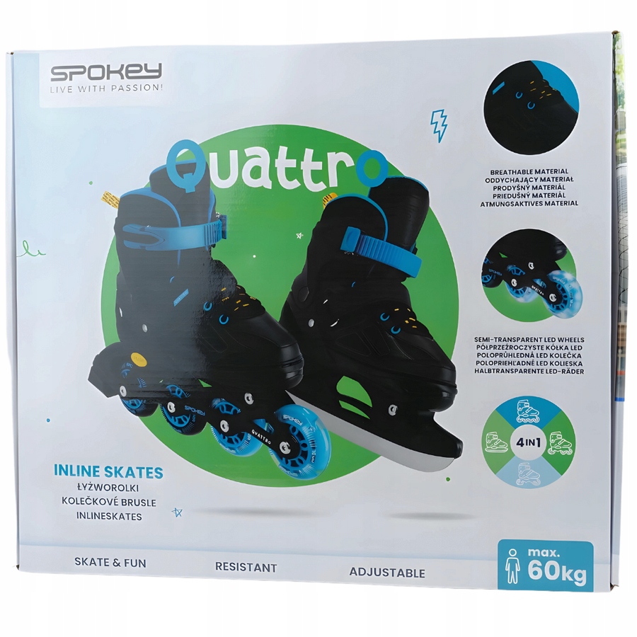 Роликові ковзани Quattro 4в1 Хокейні ковзани Роликові ковзани Світлодіодні колеса Регульовані 34-37