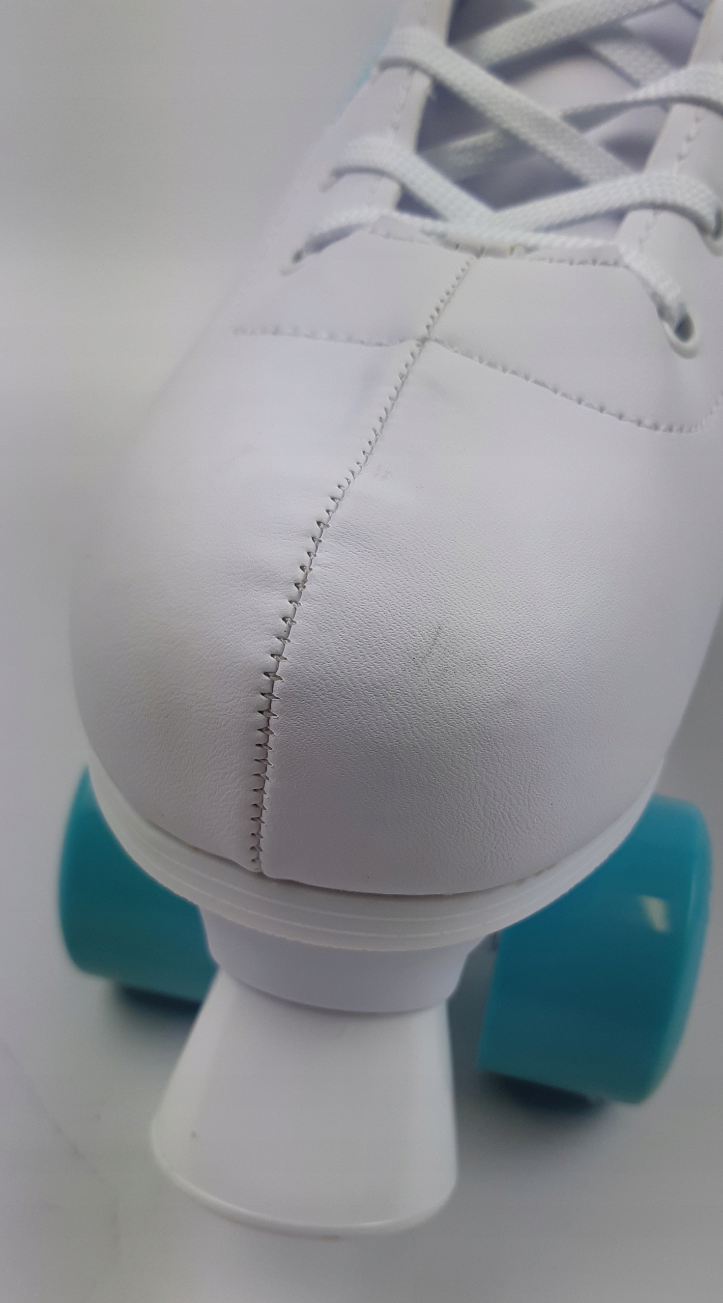 Роликові ковзани знаходяться в оригінальній, трохи потертій упаковці. На них є невеликі забруднення, подряпини та невеликі вм’ятини.