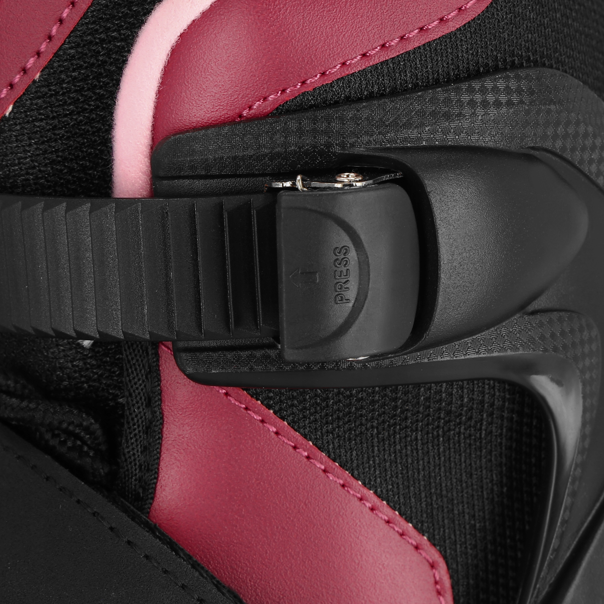 - оснащеніпотрійною системою кріплення (шнурки, липучки та двосекційна пряжка), що забезпечує ідеальну посадку взуття до стопи та запобігає руху п’яти під час катання,