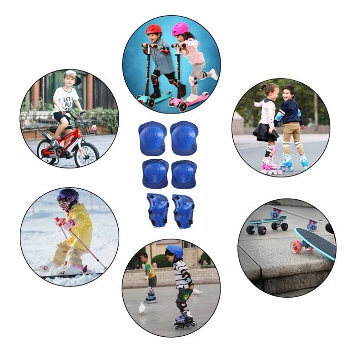 Набір протекторів для зап’ясть, колін і ліктівнезамінних для початківців велосипедистів, ролерів, скейтбордистів, користувачів вейвборду або просто, коли діти активно проводять час на свіжому повітрі.