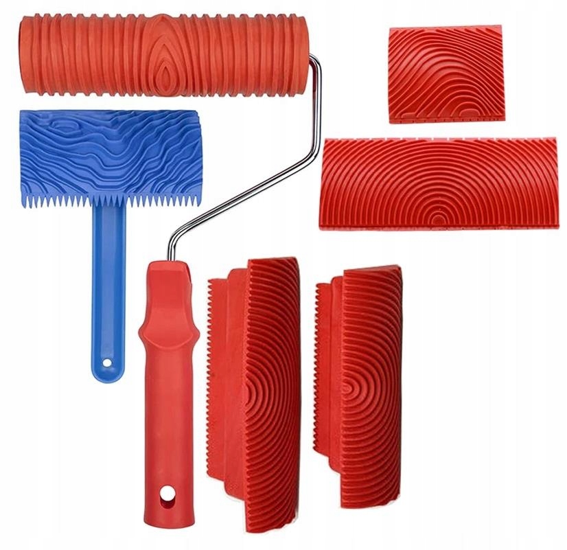 Специфікація: Функція: Фреска, Кількість: 6шт., Матеріал: Гума. Розміри валика: 17,5 x 4,5 x 32 см, розмір синьої марки: 10 x 15,5 см, розмір червоної марки: 1) 6 x 7,6 см 2) 6 x 15 см, 3) 4 x 23 см, 4 x 15 см.