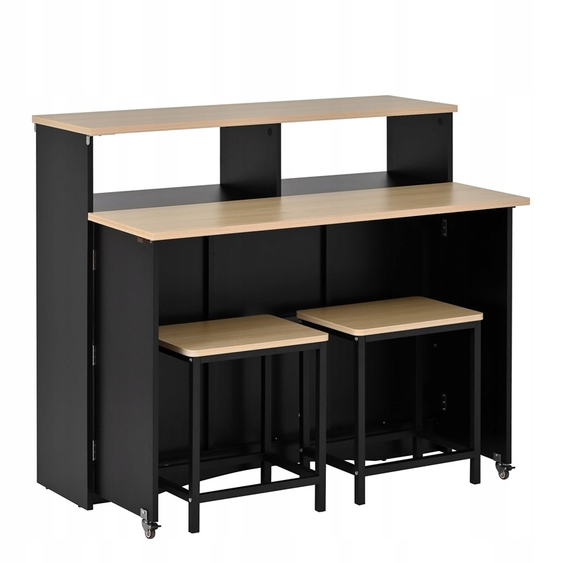 Стільниця Noble із функцією підкладки: ця стільниця, яку також можна використовувати як кухонний острів, оснащена підкладкою. Складна дошка (110x34 см, витримує 30 кг) фіксується бічними опорами і двома поворотними роликами, що замикаються. Включно з двома табуретами для гнучкої роботи або їжі. Легко скласти після використання - для більшого простору та порядку.