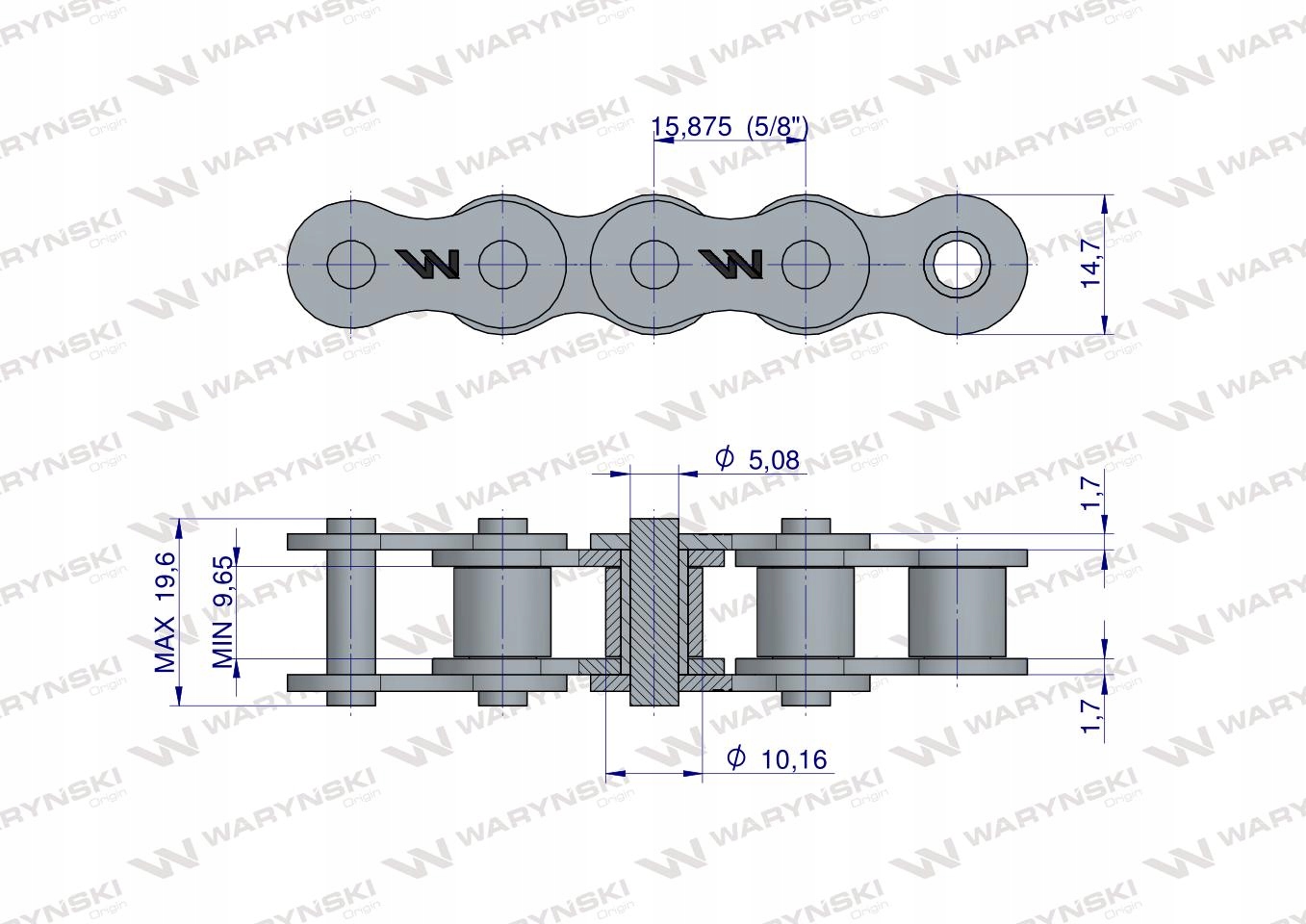 - Ланцюги WARYŃSKI характеризуються підвищеною міцністю на розрив завдяки підгонці штифтів до пластин із точністю до мікрона та підвищеній стійкості до розриву завдяки обтиску штифтів із відповідним, повторюваним зусиллям. b>