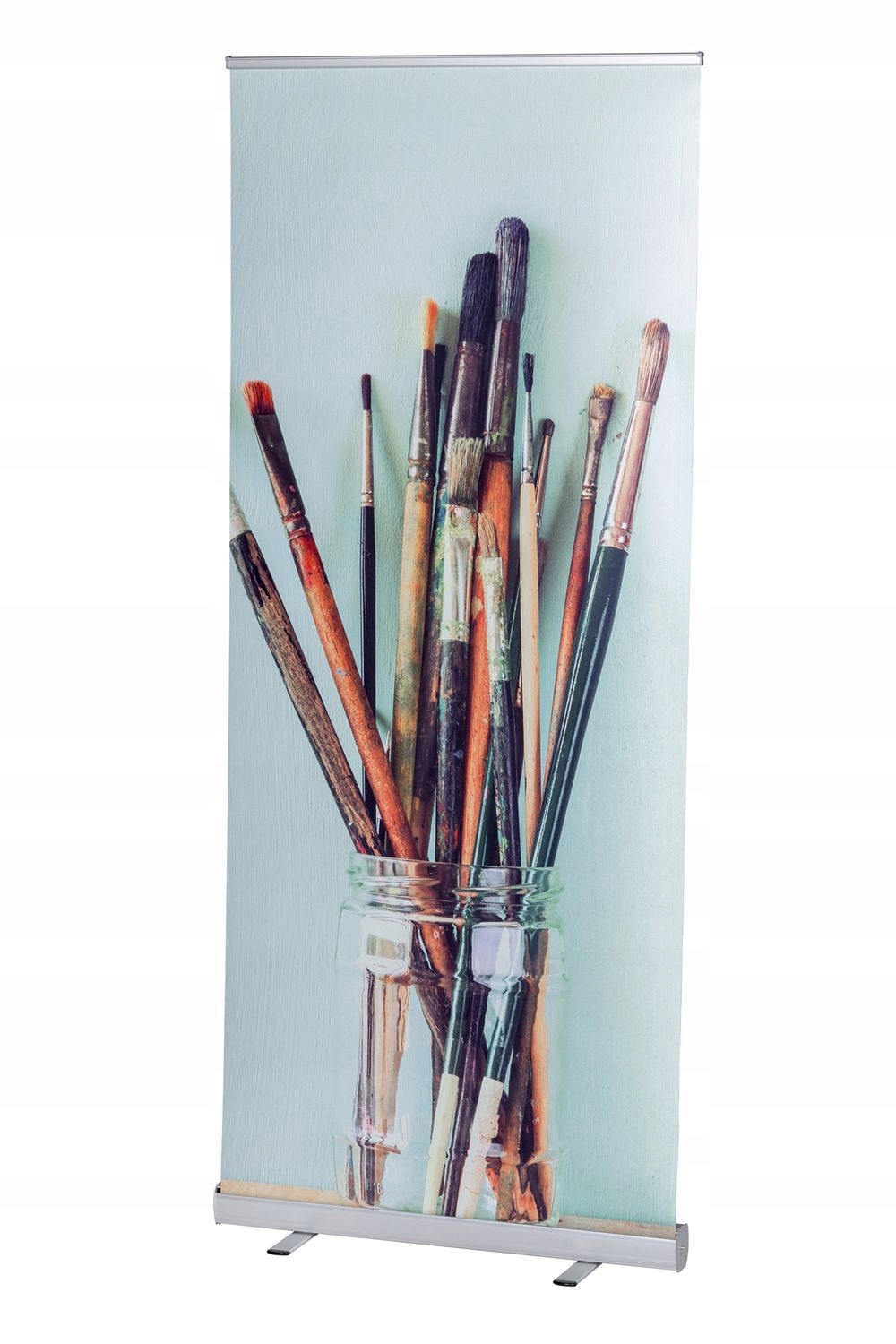 Roll up касета для друку банерів формату 85x200 см, виготовлена з алюмінію. Рулон має 2 стабілізуючі ніжки, посилений тримач для друкуючої щогли і поставляється в транспортній сумці.